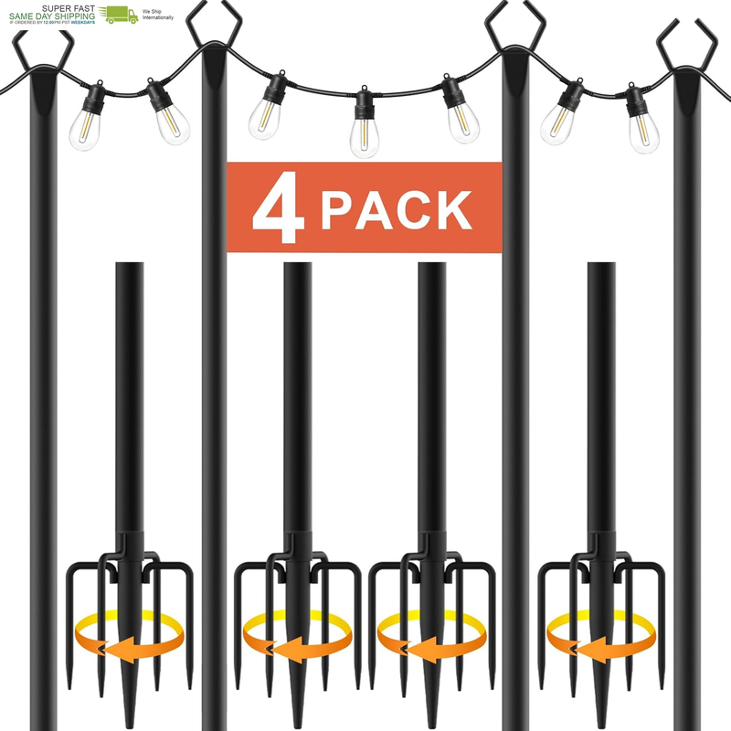 4 Pack,Light Poles for outside Lights,Outdoor with Fence Brackets Hanging Lights
