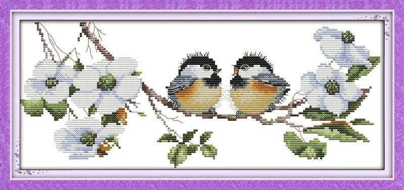 11CT Stamped Cross Stitch Kit, Printed Cross Stitch Sets, Two Happy Birds On Bra