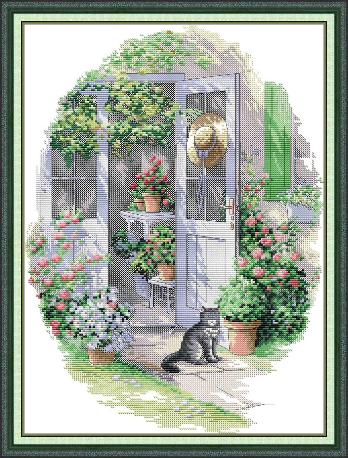 11CT Stamped Pre-printed Cross Stitch Kit Embroidery Kit, Flower Room Door And G