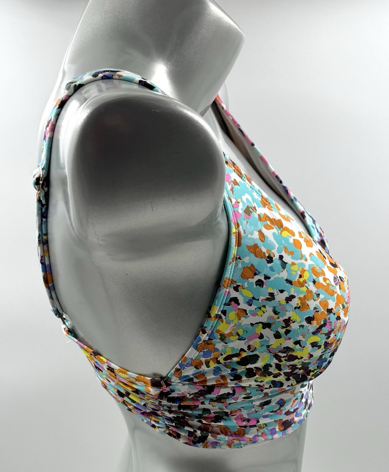 Anne Cole Banded Swimsuit Bikini Top Size Small Colorful V Neck Pink Blue NEW