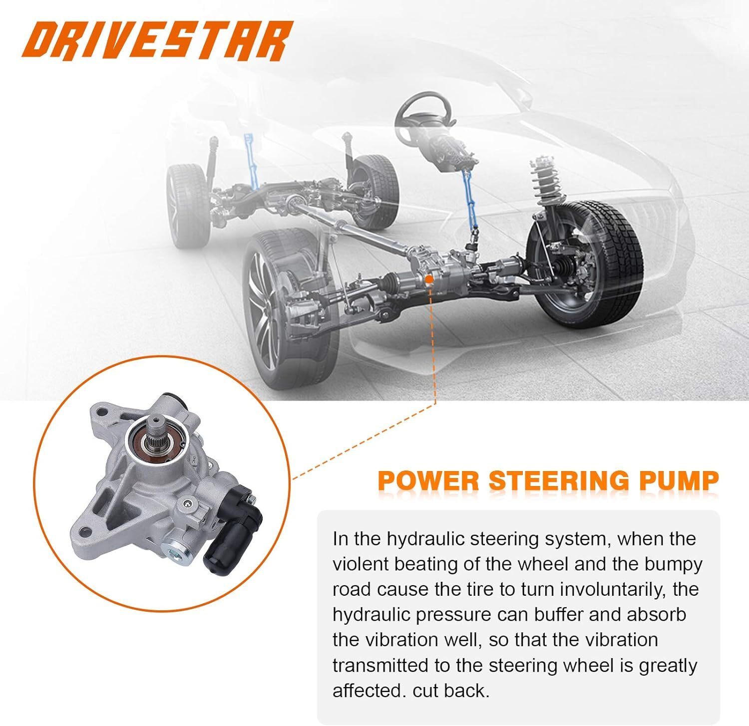 *DRIVESTAR Power Steering Pumps are completely NEW with no refurbished components and no core is needed. The direct fit design saves time and labor by making the installation simple and quick.