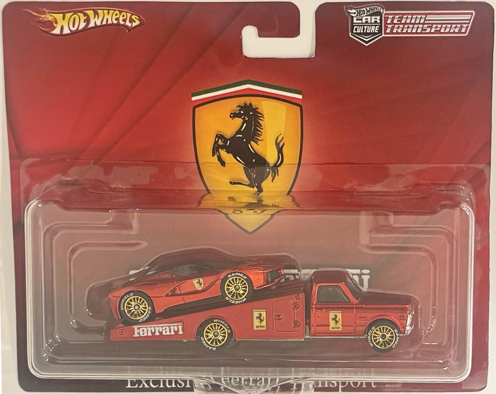 Custom Hot Wheels Team Transport FERRARI LaFerrari on the Ramp w/ Real Riders Real Rider Rubber Wheels 1:64 Scale Collectible Die Cast Model Car.