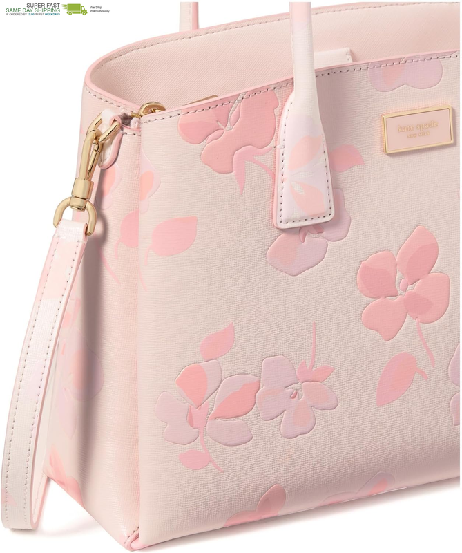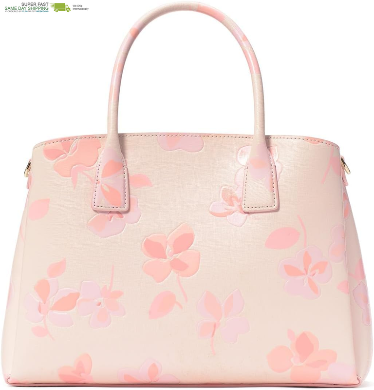 Kate Spade New York Serena Spring Pansies Embossed Saffiano Leather Satchel, Blush Cloud Multi
