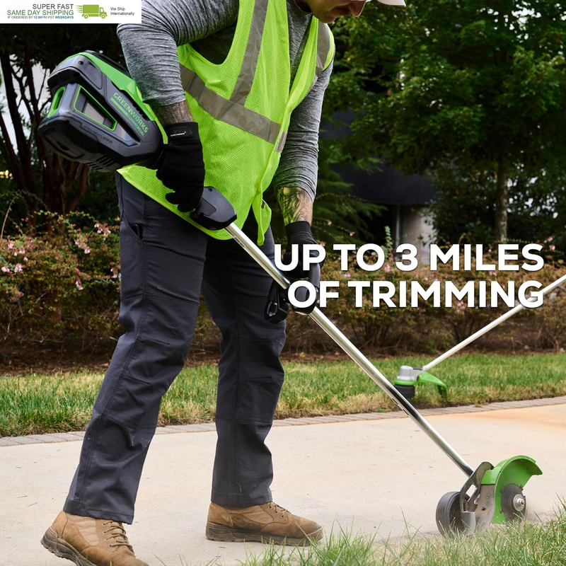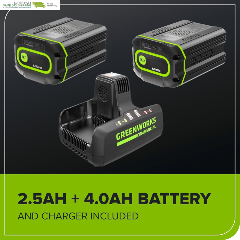 Greenworks 82V Bundle - 8" Brushless Cordless Edger, 4.0Ah Batttery and Dual Port Rapid Charger Included + Bonus 2.5Ah Battery with Bluetooth and Digital Readout