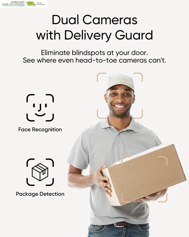 Enhanced Security with Dual Cameras: eufy doorbell features dual cameras that work in tandem to provide advanced viewing capabilities. The front-facing camera focuses on people, while the downward-facing camera captures a view of the floor in front of your door. This combination ensures comprehensive coverage and enhances security.