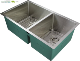 Transolid DUDOT32191016 Diamond Undermount 60/40 Double Bowl 16-Gauge Stainless Steel Kitchen Sink, 32-In X 19-In X 10-In, Brushed Finish