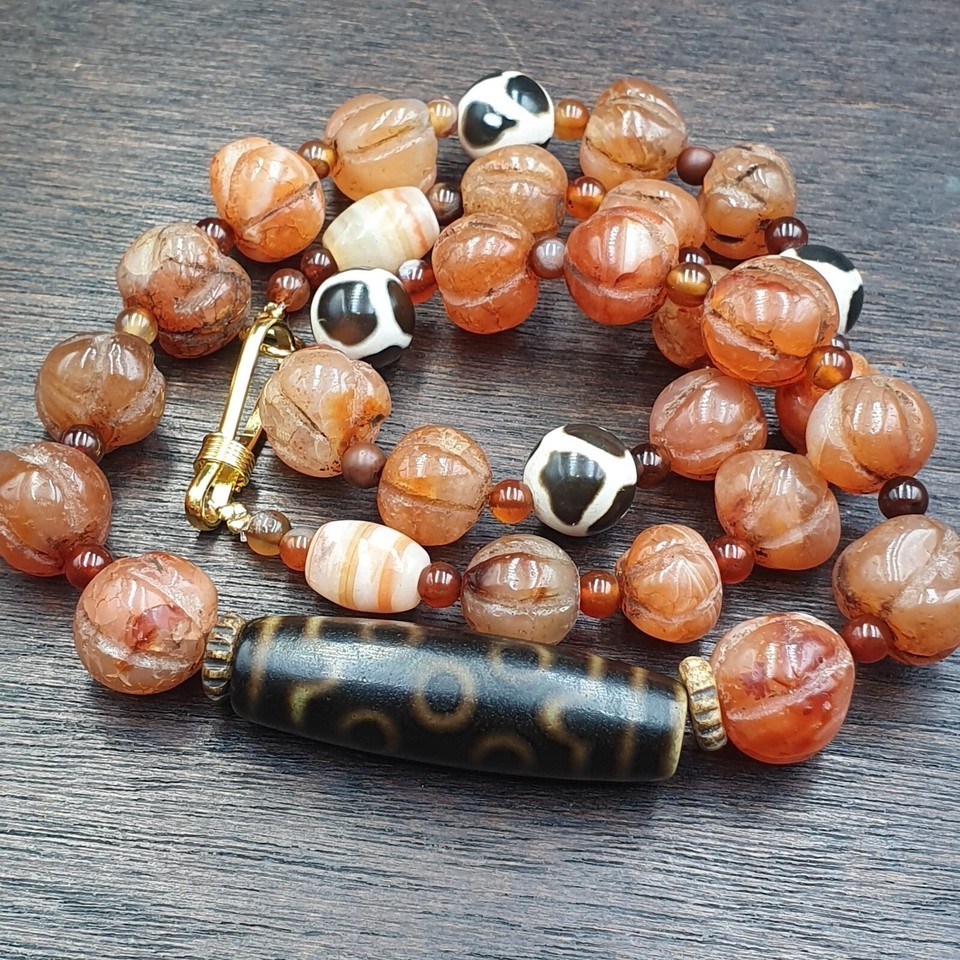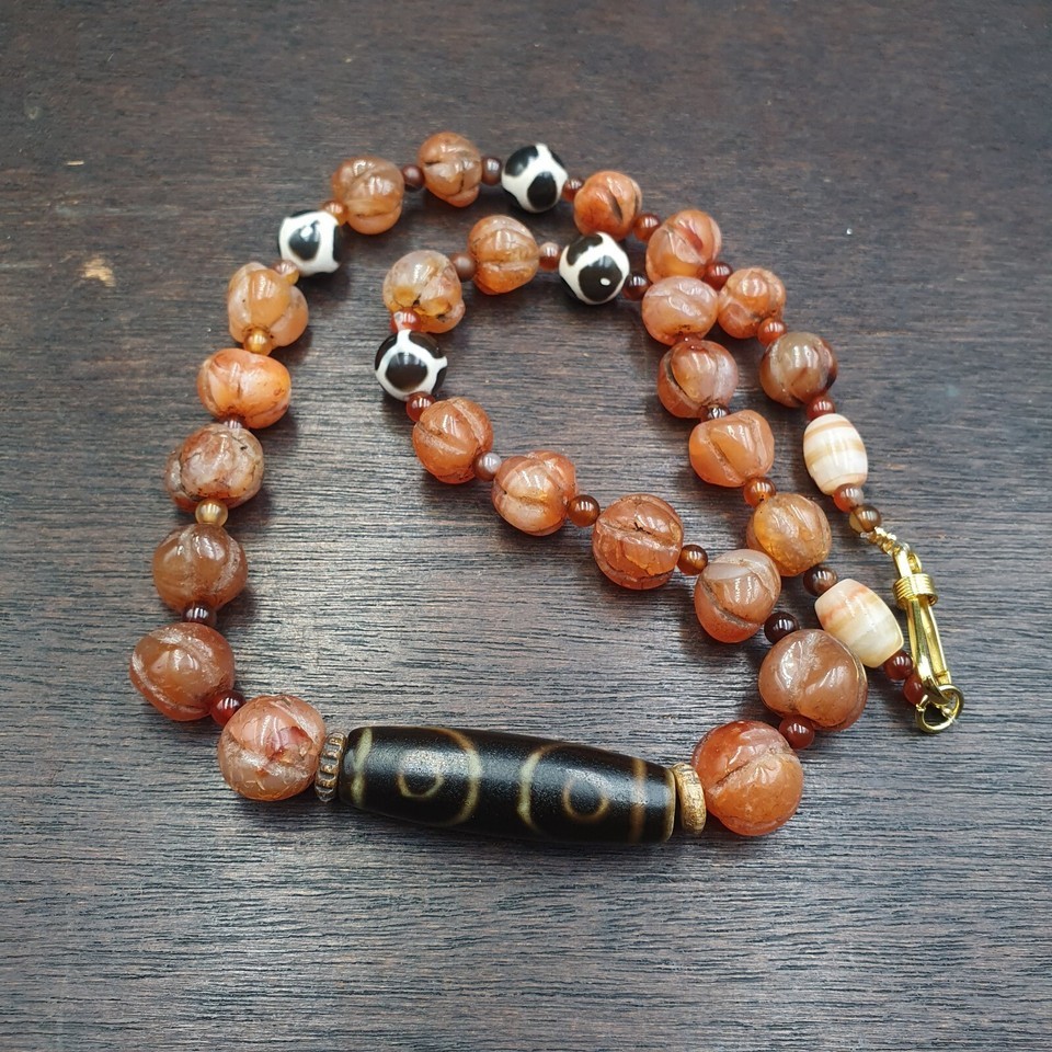 Collier Dzi, perles d'agate tibétaine and 48 similar items