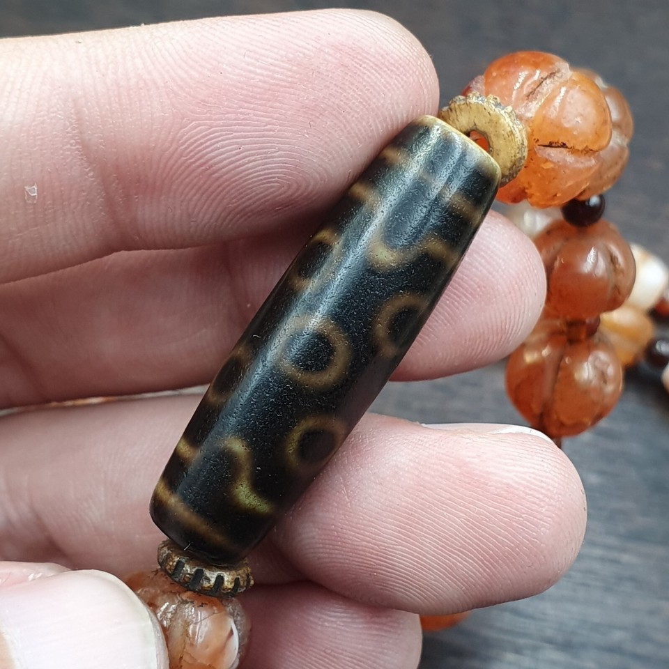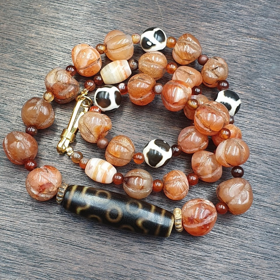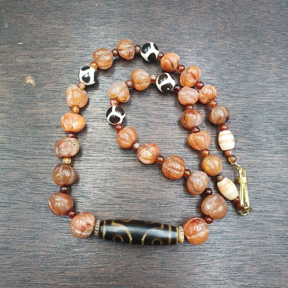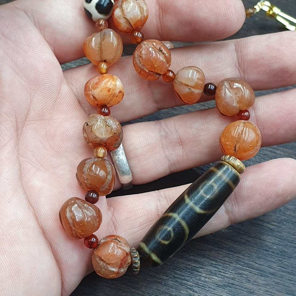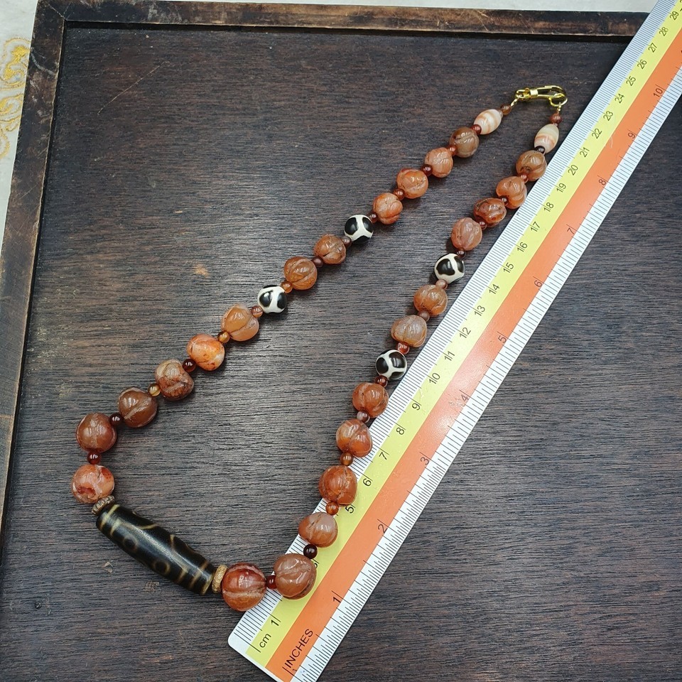 Collier Dzi, perles d'agate tibétaine anciennes de style ancien, motif unique