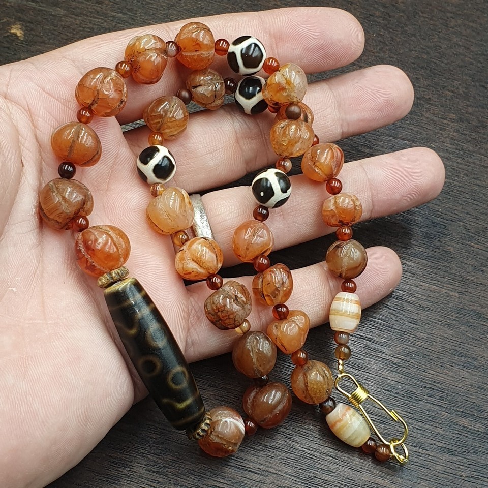 LOT perles vintage vintage ancien himalayen indo tibetain agate beads motif unique collier perles anciennes