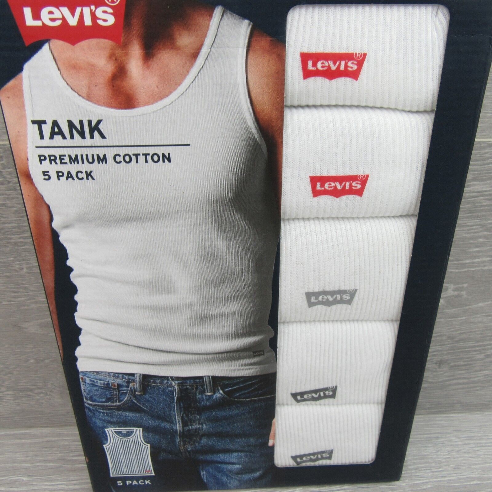 Levi’s Mens Premium Cotton Tank Top Size Medium 5 Pack White NEW 6HMTK501