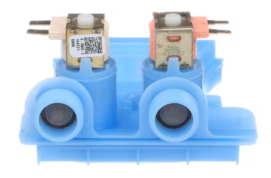 Ensure proper water flow in your GE washer with this Dual Water Inlet Solenoid Valve (K-78863-2 / 144C21). This OEM valve controls both hot and cold water supply, allowing your washer to deliver the correct water temperature for every cycle ? resulting in cleaner laundry and efficient operation.
