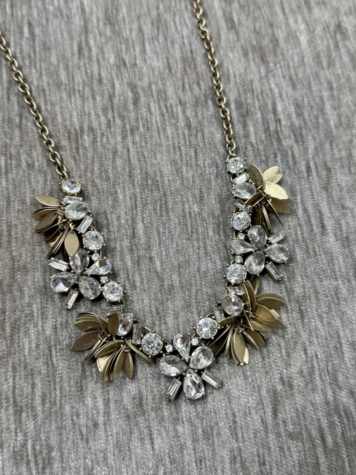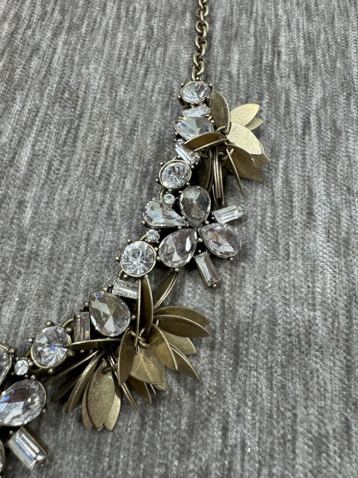 Vintage J.Crew Necklace Clear Rhinestone Statement Bronze Tone y2k Sparkle Bling