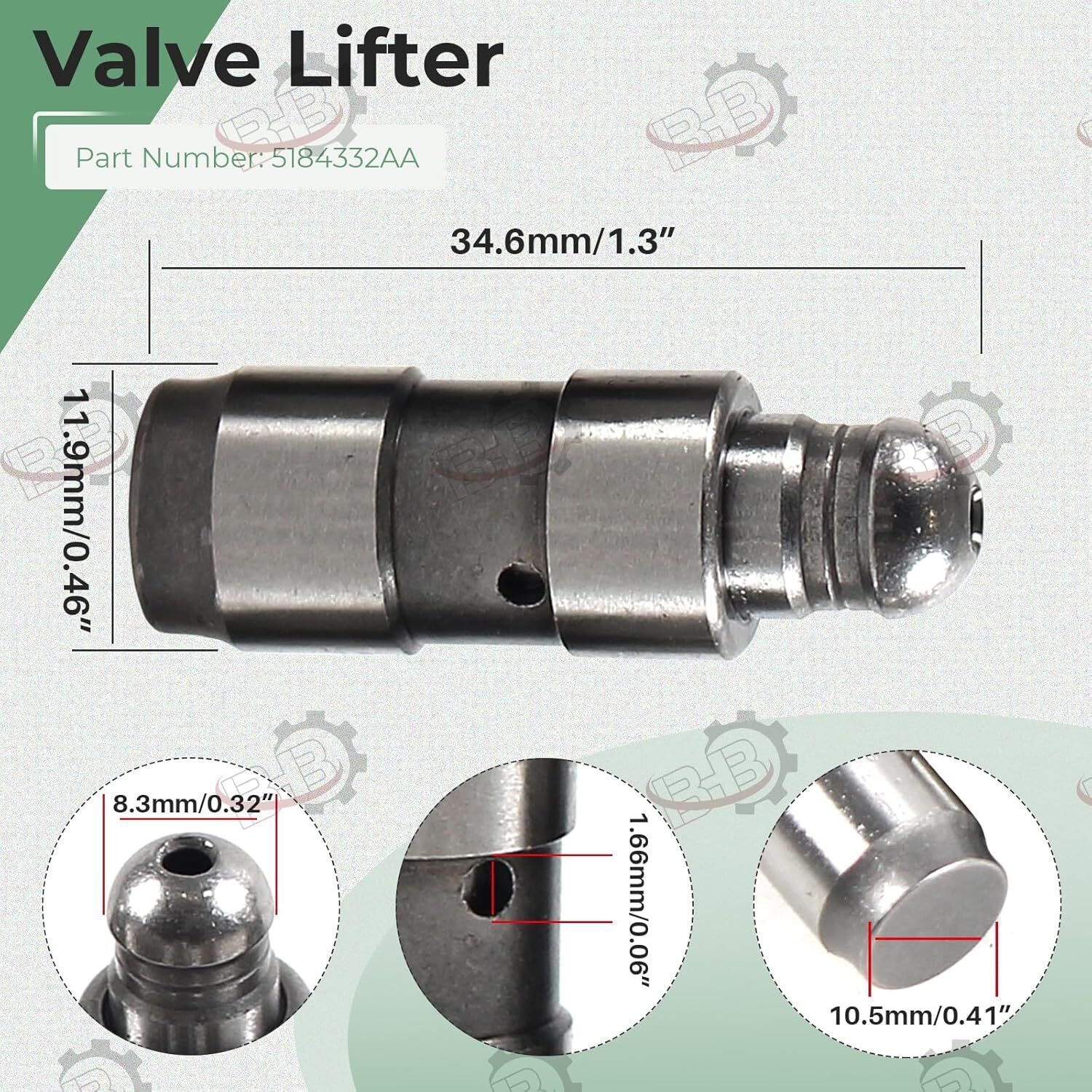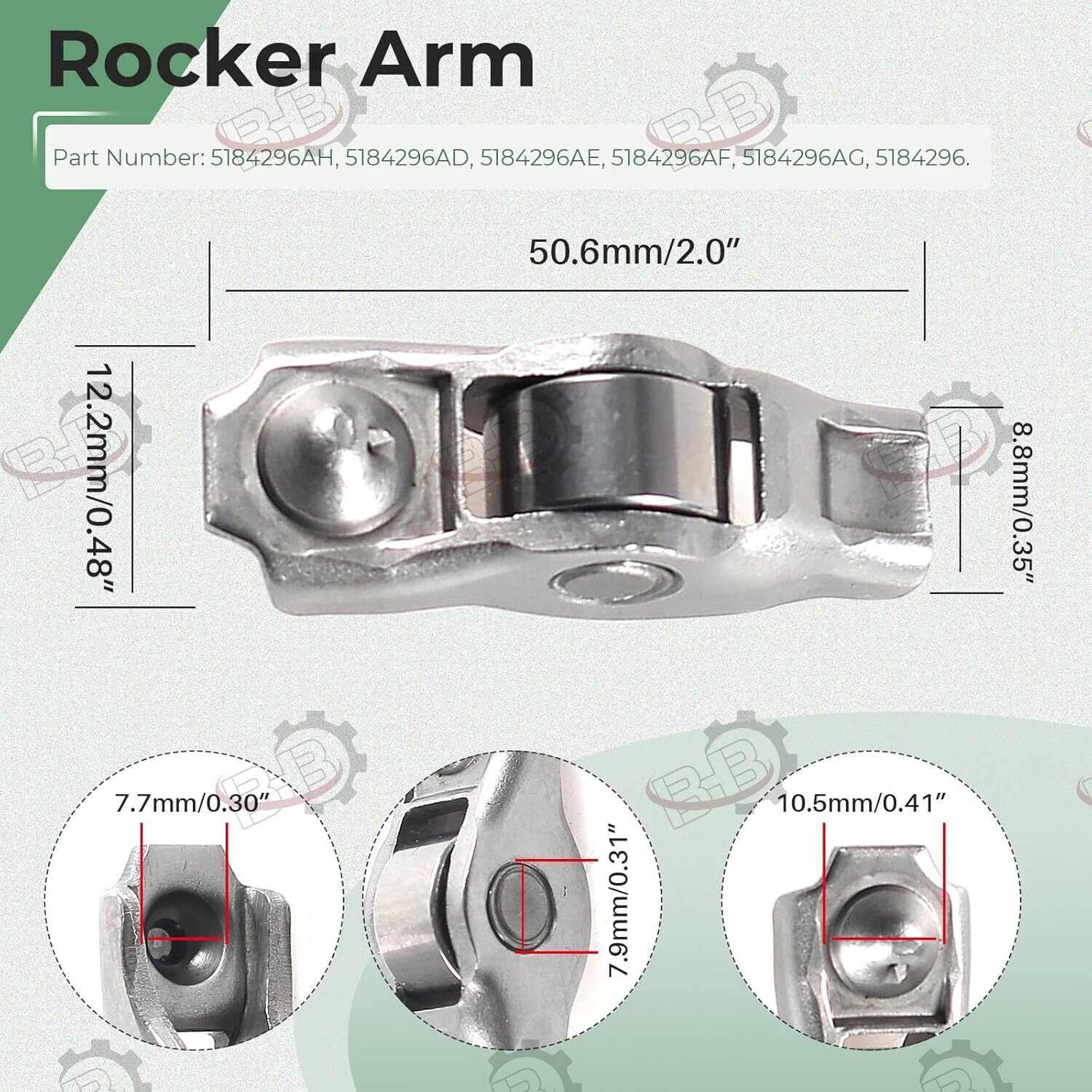 Package Includes: 12 PCS Rocker Arms and 12 PCS Valve Lifters. This is a half set of arms and lifters required for one cylinder head. Part Number: Replaces 5184332AA(Valve Lifter), Replaces 5184296AH, 5184296AD, 5184296AE, 5184296AF, 5184296AG, 5184296(Rocker Arm). Fitment: Compatible with Jeep Cherokee 2014-2022 (3.2L), for Jeep Grand Cherokee 2011-2019 (3.0L), for Jeep Wrangler 2012-2018, for Dodge Grand Caravan 2011-2020, for Dodge Journey 2011-2019, for Dodge Durango 2011-2015, for Dodge Challenger Charger 2011-2022, for Dodge Avenger 2011-2014 Fitment: Compatible with Chrysler 200 2011-2017, for Chrysler 300 2011-2022, for Chrysler Town Country 2011-2016, for Ram 1500 2013-2018, for Ram 1500 Classic 2019-2022, for Ram C/V 2012-2015, for Ram Promaster 1500 2500 3500 2014-2021 3.6L engines. Good Quality: The rocker arm and lifter is made of premium materials, has endurance tests to guarantee long-term dependability and safety before shipping. Directly replace the broken one.