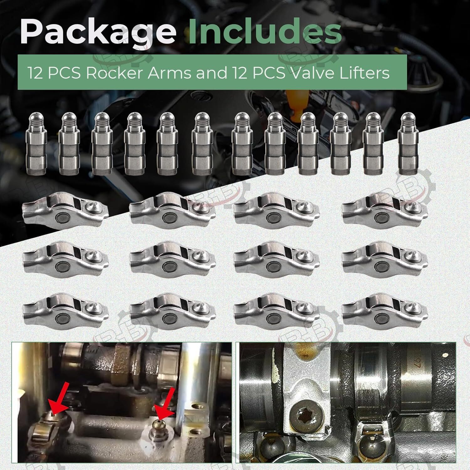 BHB 12Pcs Rocker Arm and Lifter 2011-2022 Compatible with Dodge Jeep Ram Chrysler for Challenger Charger Journey Avenger Grand Cherokee Wrangler 3.6L Replaces 5184296AH 5184332AA