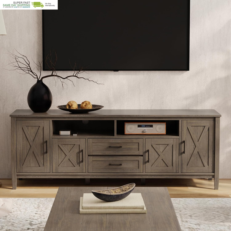 Extra wide TV Stand is perfect for TVs up to 80 inches, includes cord management cut-outs for easy installation of TV and media components.