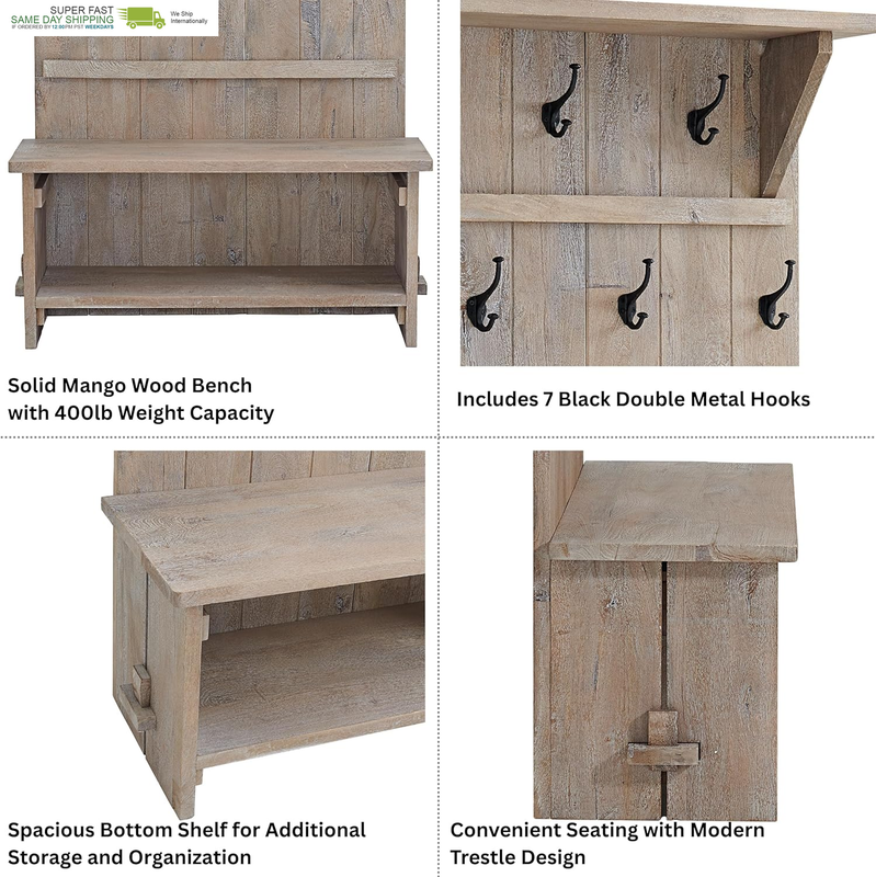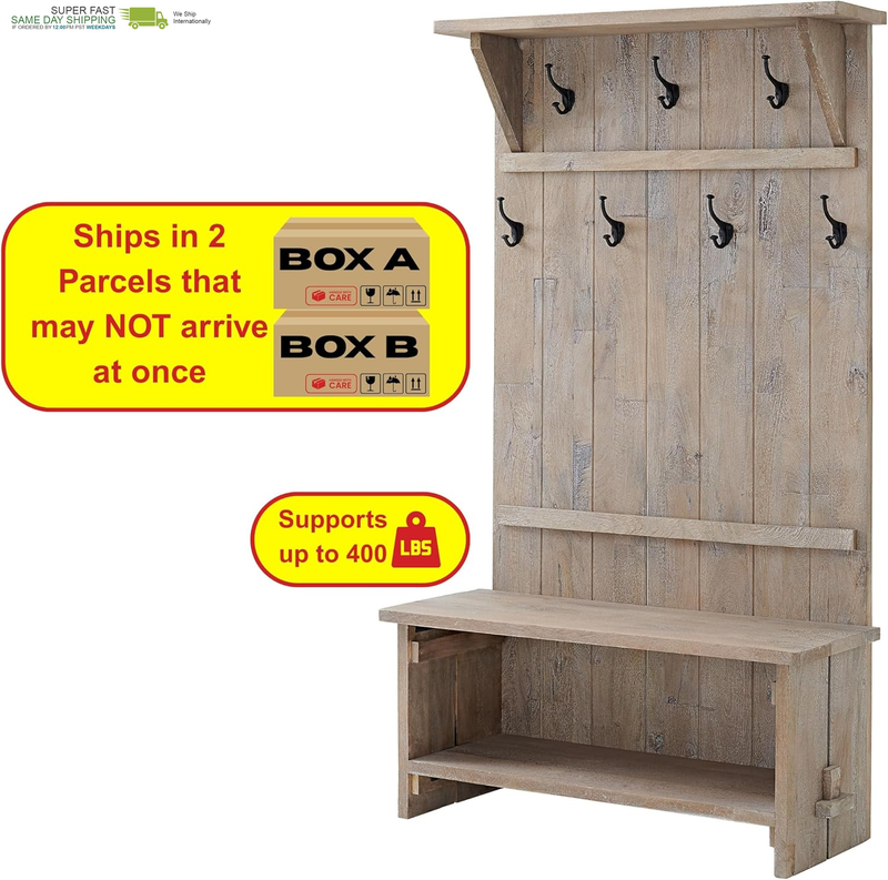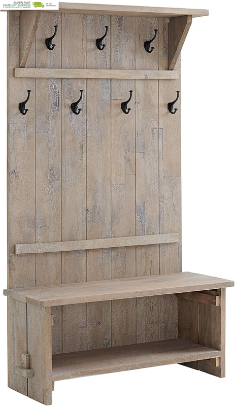 Alaterre Furniture Castleton Mango Wood Hall Tree, Driftwood Finish, 70 In. H -