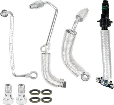 ?Perfect Fitment?Compatible with Chevy Cruze 2011-2019,Compatible with Buick Encore 2013-2021,Compatible with Chevy Sonic 2012-2020,Compatible with Chevy Trax 2013-2021,Compatible with Chevy Cruze Limited 2016.Please check the car fitment carefully before purchase. ?Direct Replace?Replacement for the OEM Number 55568031 / 55592600 / 55567067 / 55587854 / 25198546 / 55580423 / 55580424 / 55565395 / 25200947 / 55569839 / 625829 / 667-522 / 667522 / 667-580 / 667580. ?High-Quality Components?The wiring and connectors of the kit are designed to precise specifications. oil lines are made of flexible corrugated stainless steel with sturdy aluminum connectors.Compared with the original plastic lines,Our kits can provide better leak resistance and offers reliability, stability, and a longer lifespan. ?Cost-Effective Maintenance?This kit can prevent turbocharger damage to a certain extent by replacing old wiring and connectors, saving time and money on repairs. ?Package Content?1x Turbo Oil Feed Tube, 1x Turbo Oil Return Pipe, 1x Turbo Coolant Feed Pipe, 1x Turbo Coolant Return Pipe.Easy Installation.