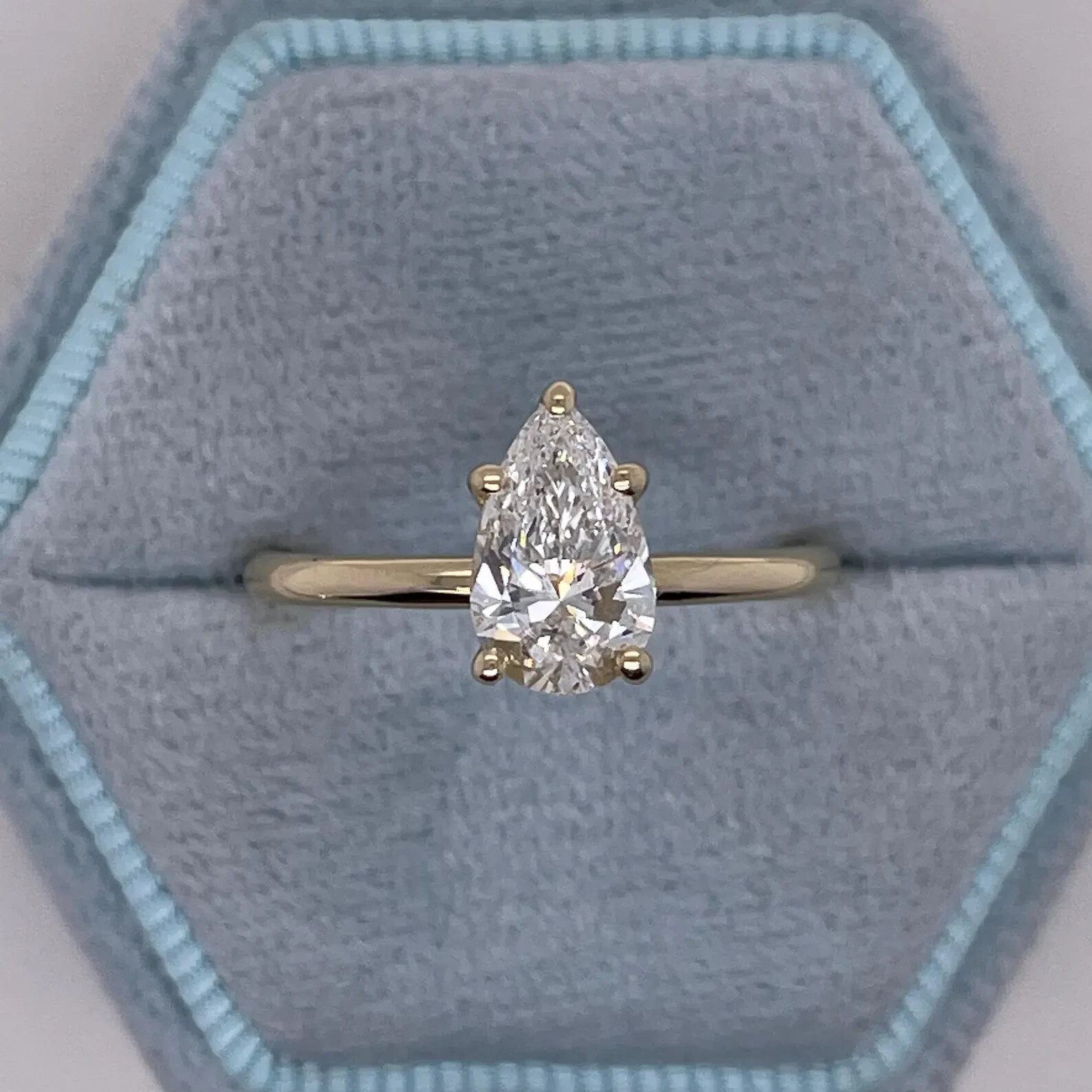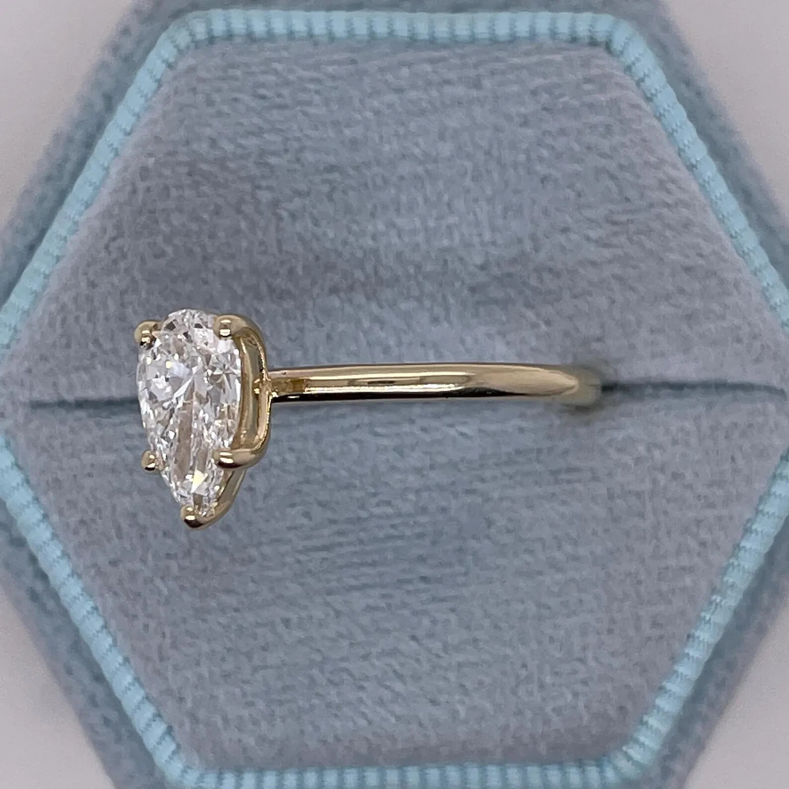 Lab Grown 1.00 Carat D Color VVS2 Clarity IGI CERTIFIED Pear Cut Diamond Ring