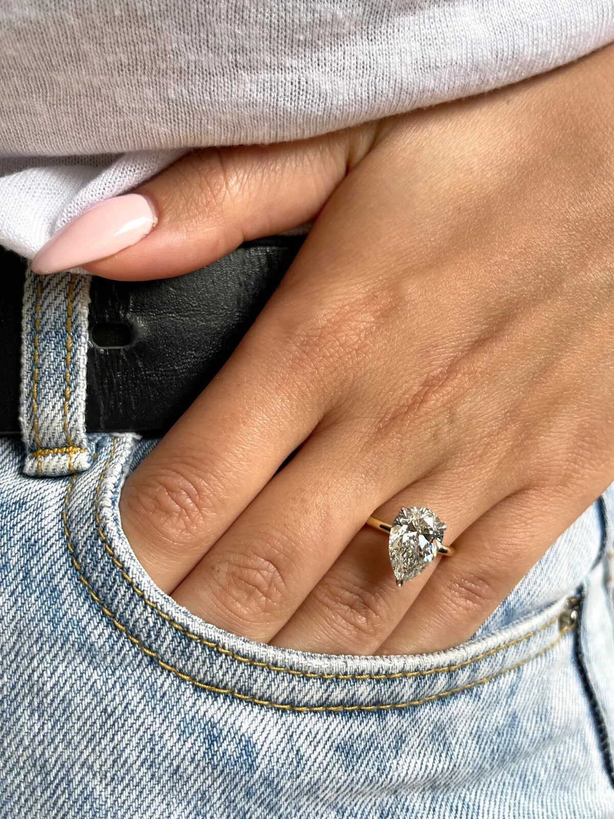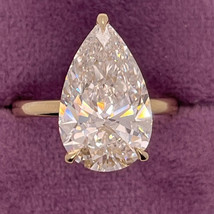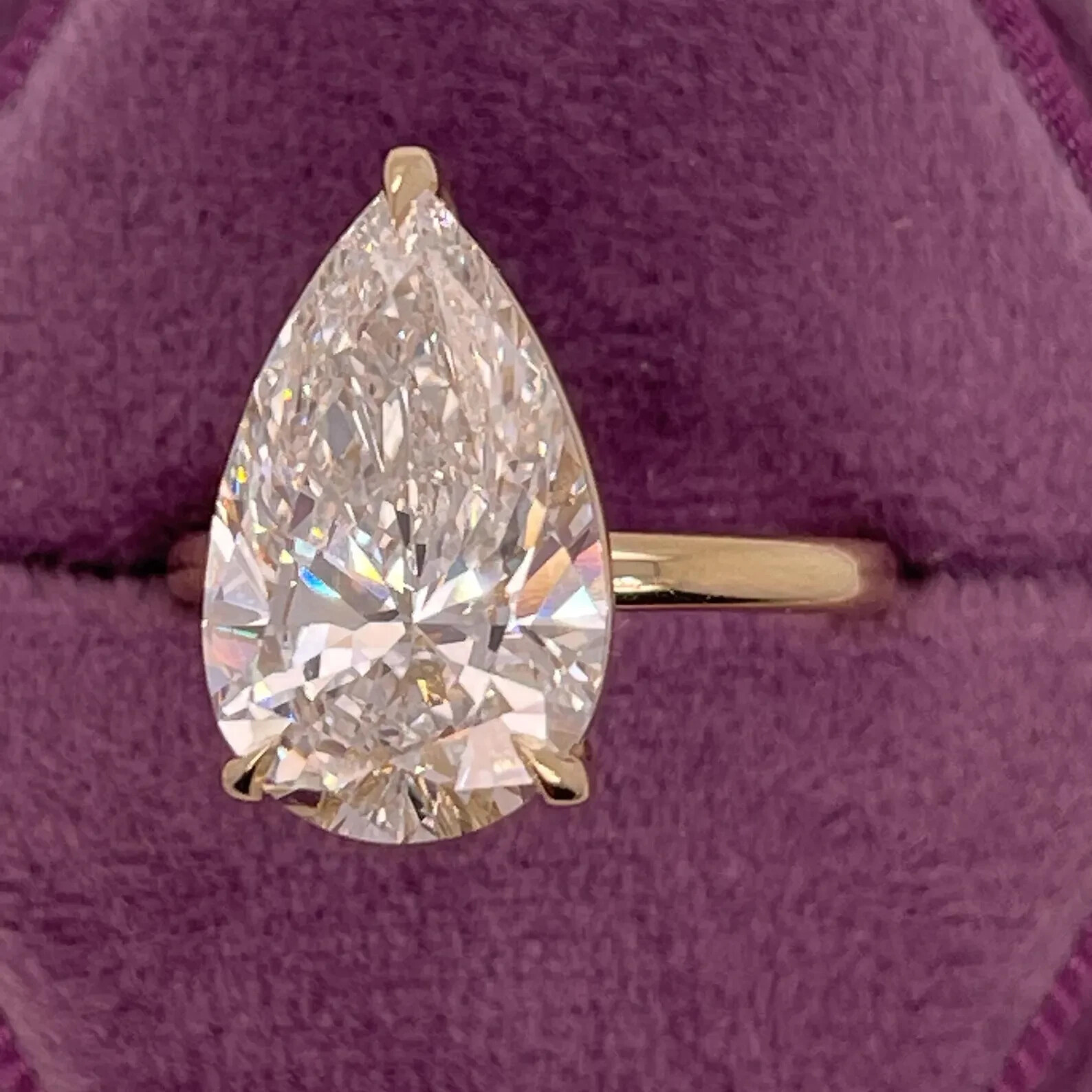 Lab Grown 6.00 Carat F Color VVS2 Clarity IGI Certified Pear Cut Diamond Ring
