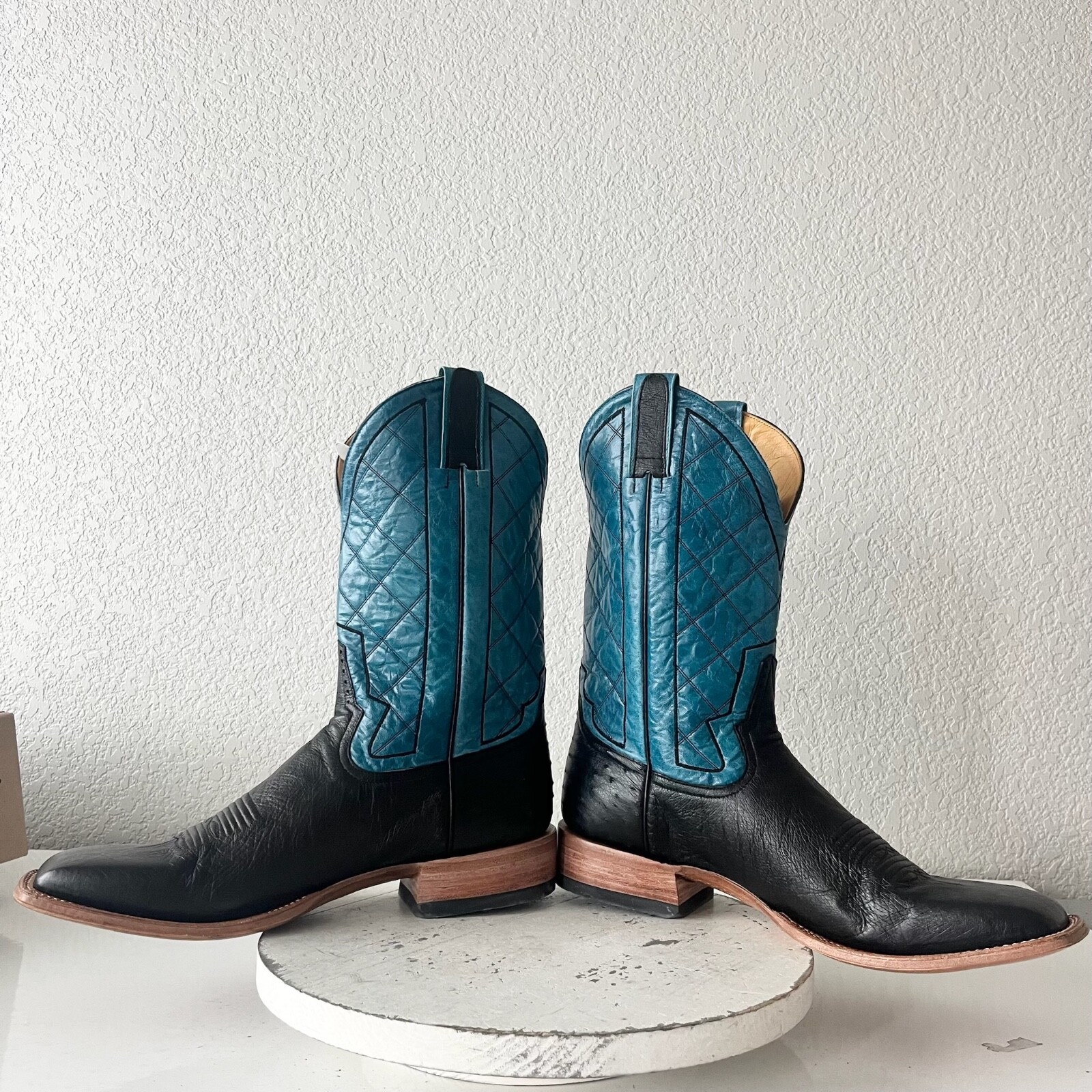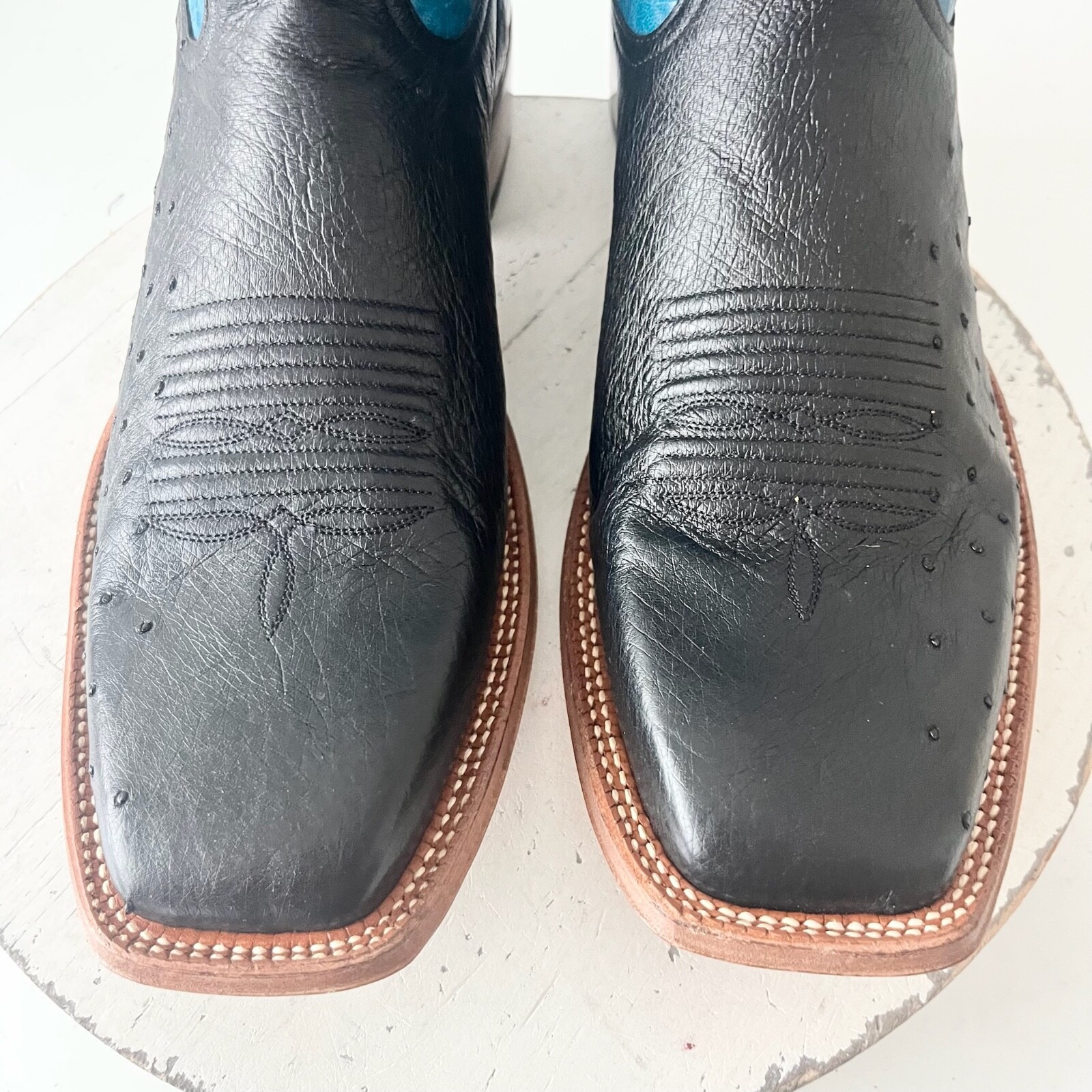 Rod Patrick Mens Cowboy Boots 13.5 A Black Ostrich Blue Top Leather Square Toe