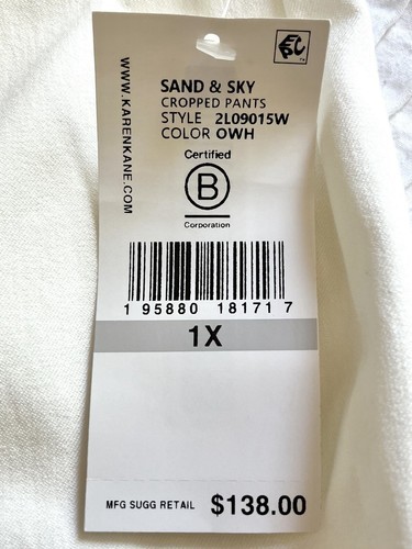 NWT Karen Kane Sand & Sky Cropped Pull On Off White Pants Size 1X