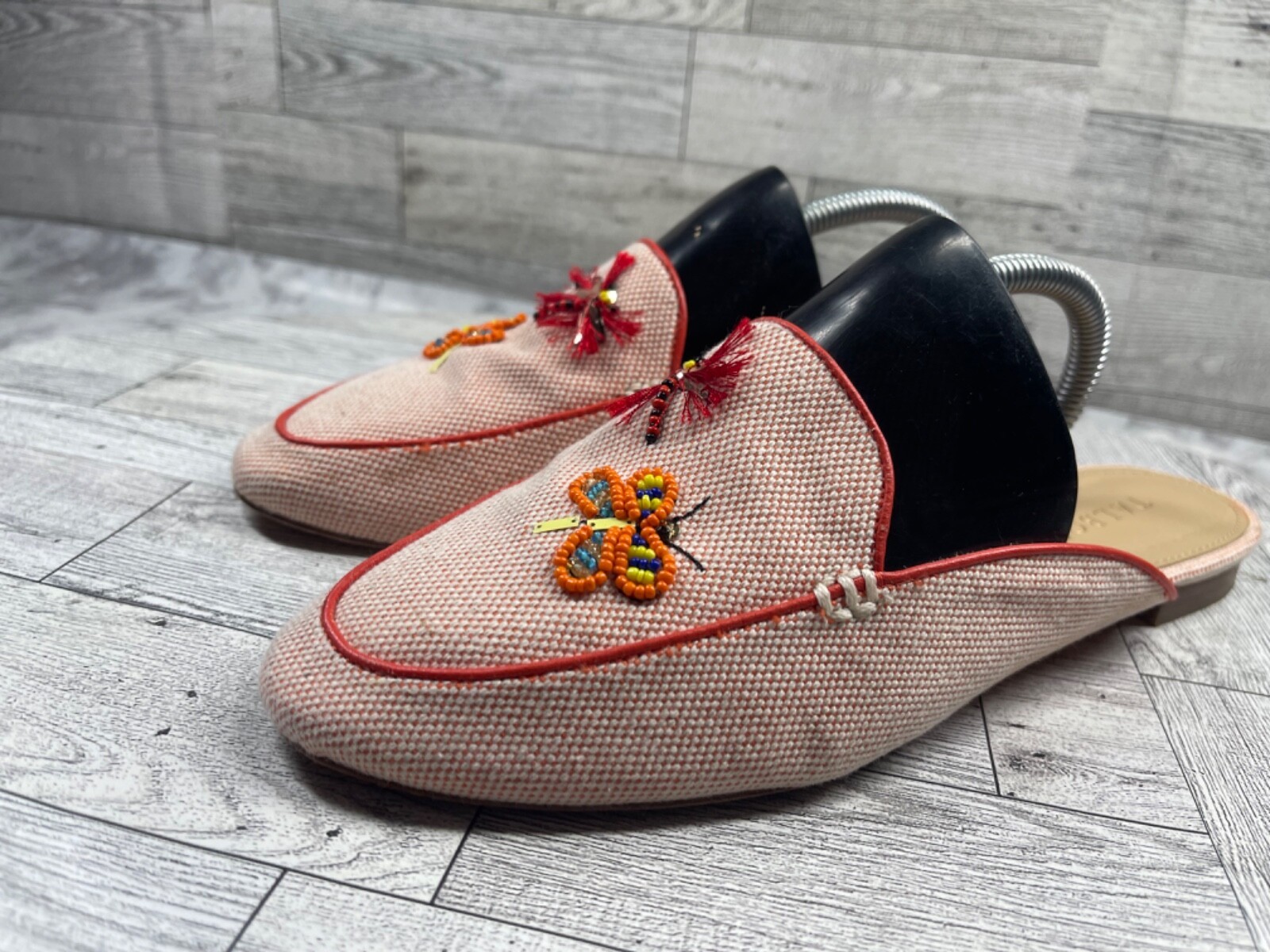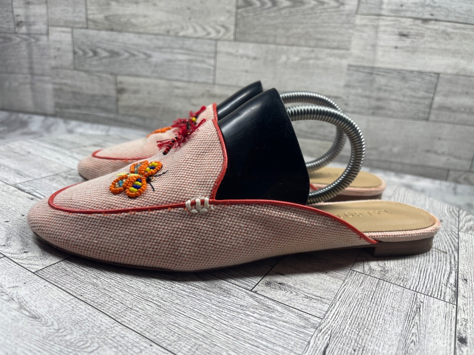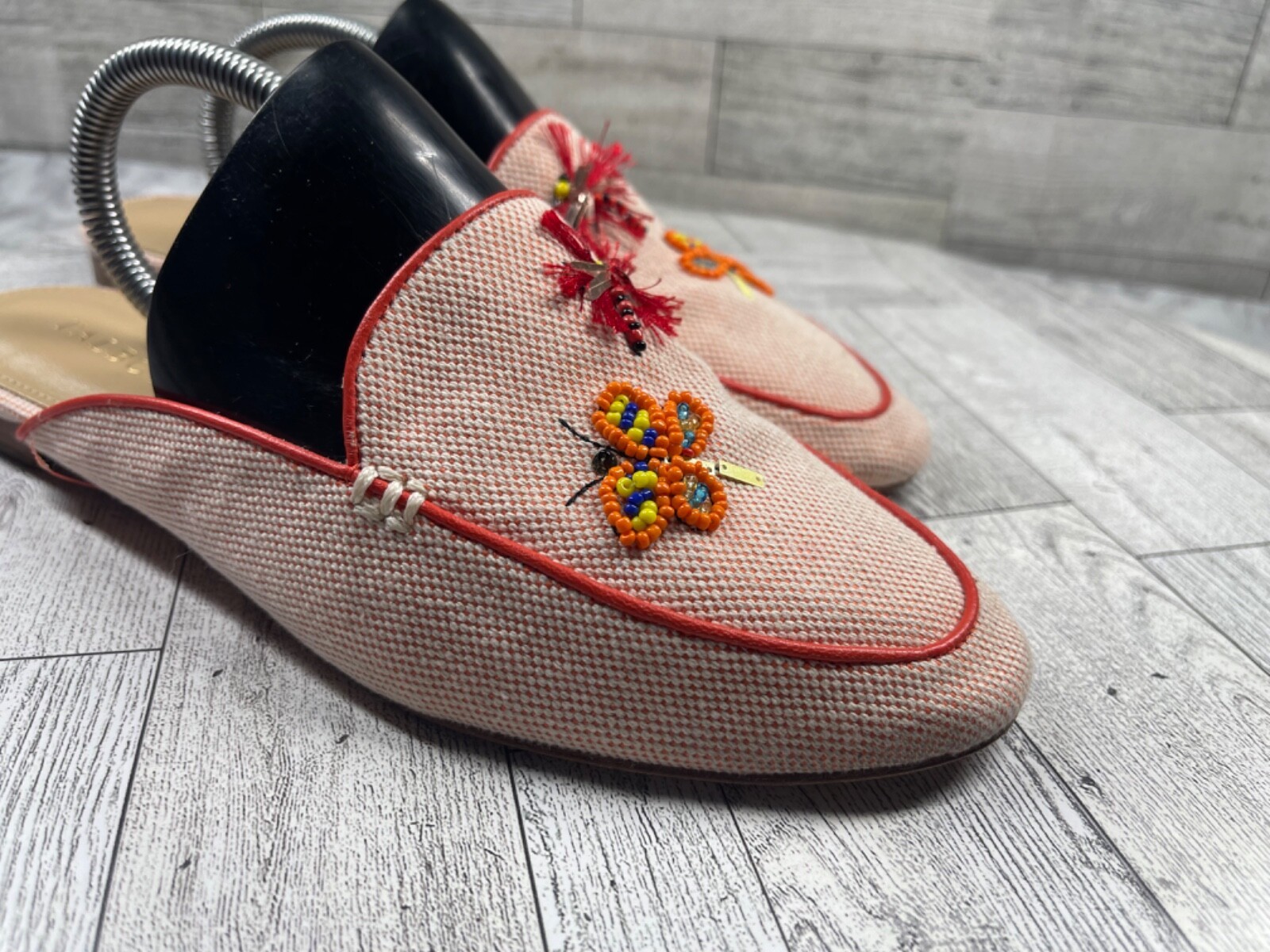Talbots Mules Women 8M Ryan Butterfly Shoes Red Canvas Slip On Beads Comfort