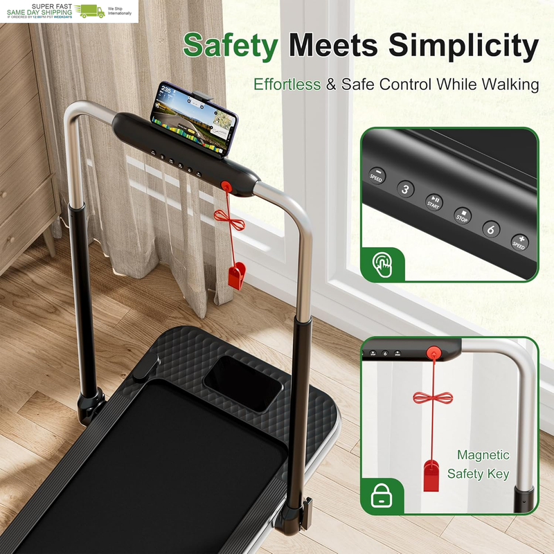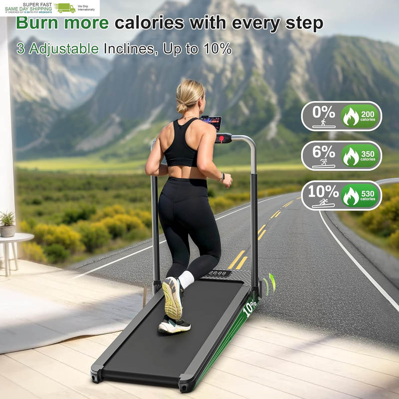 WELLFIT 10% Incline Foldable Walking Pad Treadmill with Cushioned Handle Bar for