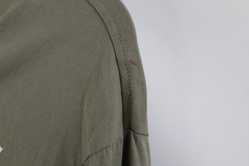 Hole front top left, left armpit. Loose thread right armpit, tag, collar, cuffs. Stain left shoulder. Blemishes shoulders, inner collar, back top. Graphics, color faded. Pilling
