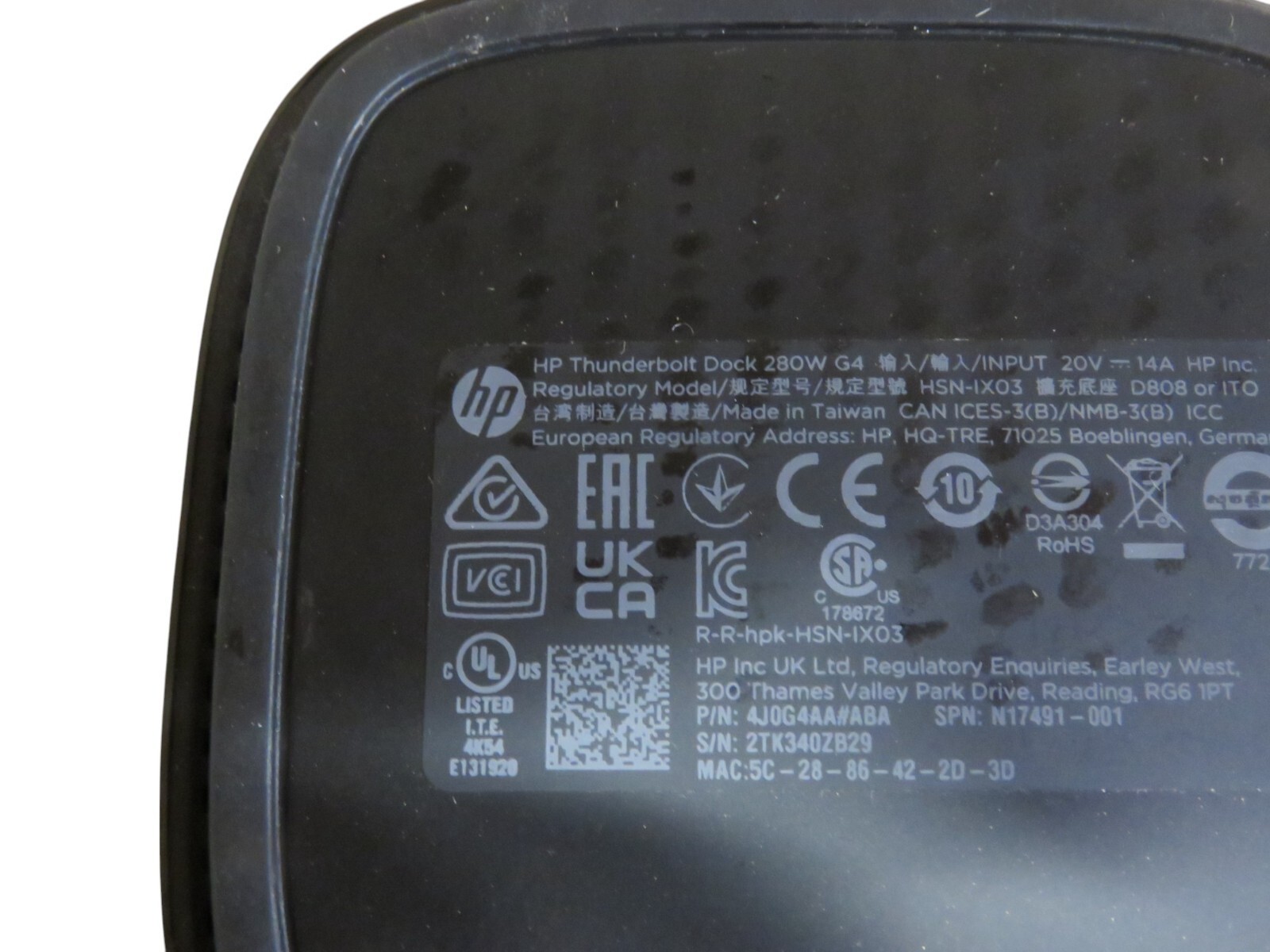 HP Thunderbolt Dock 120W G4 4J0A2AA#ABA HSN-IX03 Docking Station - NO ADAPTER