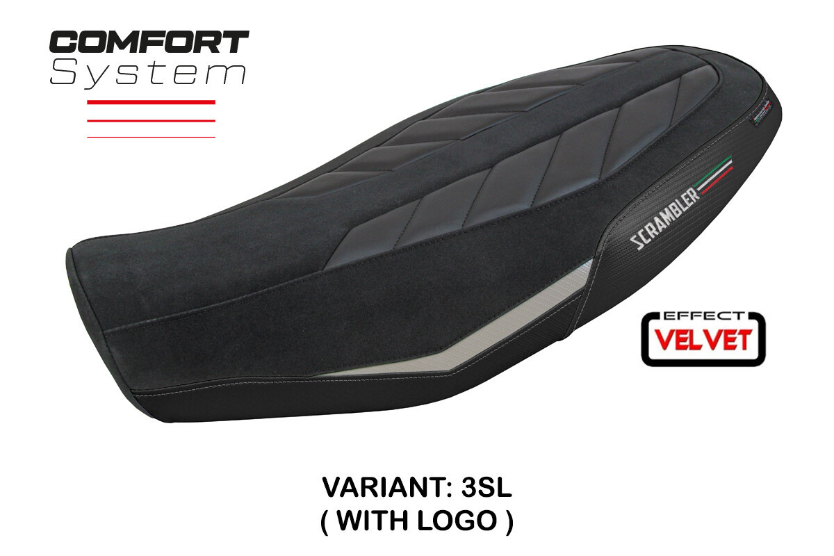 Ducati Scrambler 800 2023-2025 Seat Cover Tappezzeria Comfort Velvet Silver Blck