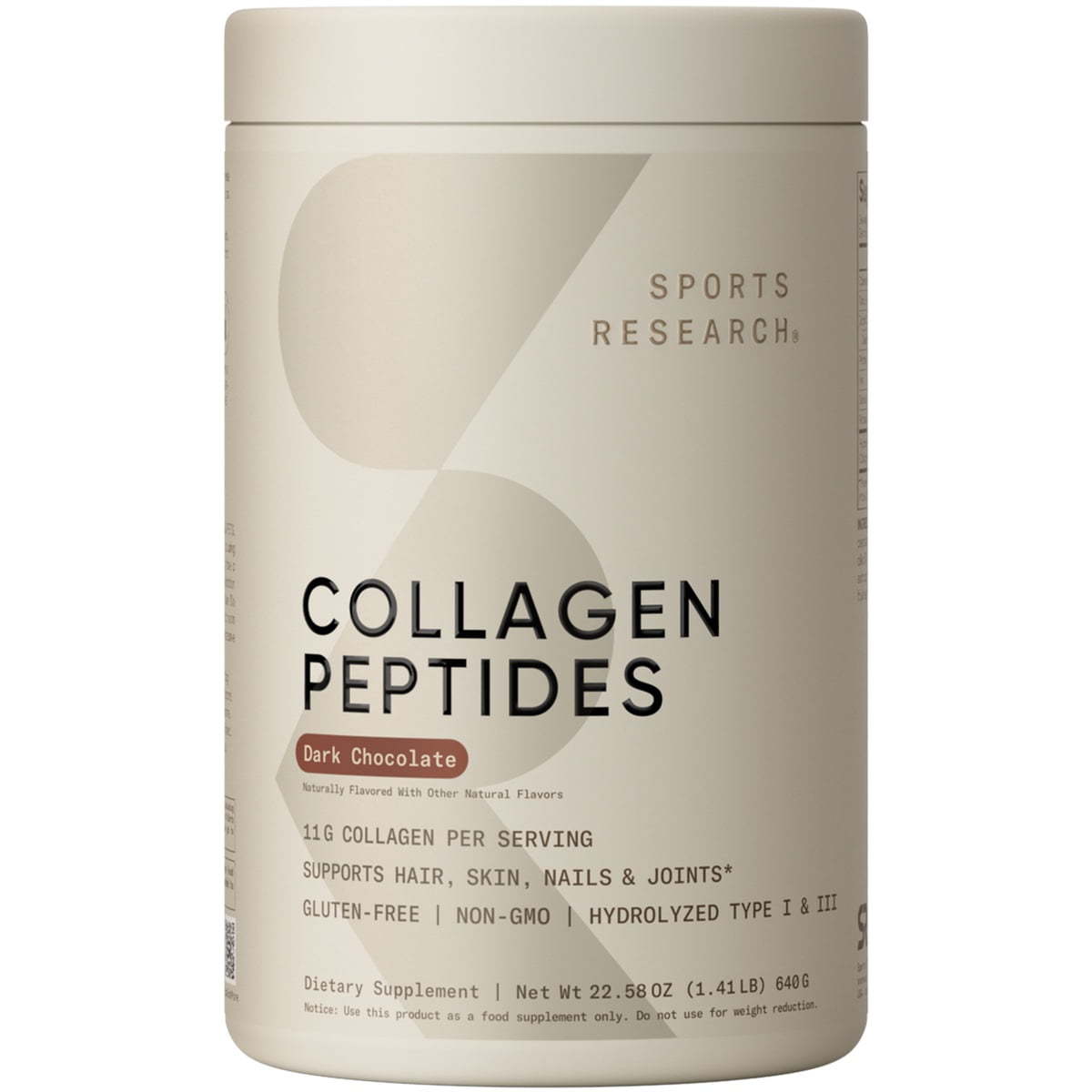 Get radiant skin and support your body with this collagen and protein supplement.* Our collagen peptides may support you in getting healthier nails, and also helps your skin look more radiant and youthful.* This hydrolyzed collagen peptides powder is ideal for enhancing your fitness and workout routines.* Each scoop provides 11 grams of low molecular weight collagen containing 18 amino acids including glycine, proline, and hydroxyproline and 10 grams of protein. Trust in our commitment to quality and enjoy the benefits of our organic collagen peptide supplements. Give yourself support from the inside out with the Sports Research Collagen Peptides Powder. These hydrolyzed collagen peptides mix easily into any liquid, offering a smooth consistency with 10g of protein and only 40 calories per serving. It provides 11g of hydrolyzed collagen peptides per scoop, enhancing skin, nails, and overall fitness. This collagen powder can be added to any drink. Add a boost of flavor to your tea or smoothies with dark chocolate, chocolate, vanilla, and matcha green tea flavors, or keep it simple with unflavored. Our protein powder can also be used in baking recipes, and the unflavored option is perfect for blending into soups and other meal prep recipes. Our collagen powder is perfect for those who care about both their health and the planet. These collagen peptides are keto certified, Paleo friendly, gluten free, Non-GMO, and third-party tested for purity and safety. Incorporate this dietary supplement powder into your daily routine to support your health goals. Add the Sports Research Collagen Peptides Powder to your cart today! RADIANT AND YOUTHFUL APPEARANCE: This collagen powder for women and men provides the protein and amino acids to support healthy nails, and also helps your skin look more radiant and youthful. Give yourself support from the inside out JOINT SUPPORT: Amino acids support joint health and improve your body?s response to strenuous exercise, making this collagen powder a great post-workout supplement and joint support supplement EASY TO USE: Use one scoop of our drink mix daily as a smoothie powder or as a completely soluble protein creamer for coffee. Our collagen peptides dietary supplements also dissolve in water and are just 40 calories per serving MORE COLLAGEN PER SCOOP: Our collagen peptides powder contains 11 grams of low molecular weight type 3 and 1 hydrolyzed collagen peptides with 18 amino acids, including glycine, proline, and hydroxyproline. Each serving contains 10 grams of protein BEST INGREDIENTS: We hold our supplements to a higher standard. Our protein powder supplement is Certified Paleo Friendly, Keto Certified, 3rd party quality tested, and non-GMO with no artificial flavors, sweeteners, or hidden fillers info:We aim to show you accurate product information. Manufacturers, suppliers and others provide what you see here, and we have not verified it.??See our disclaimer