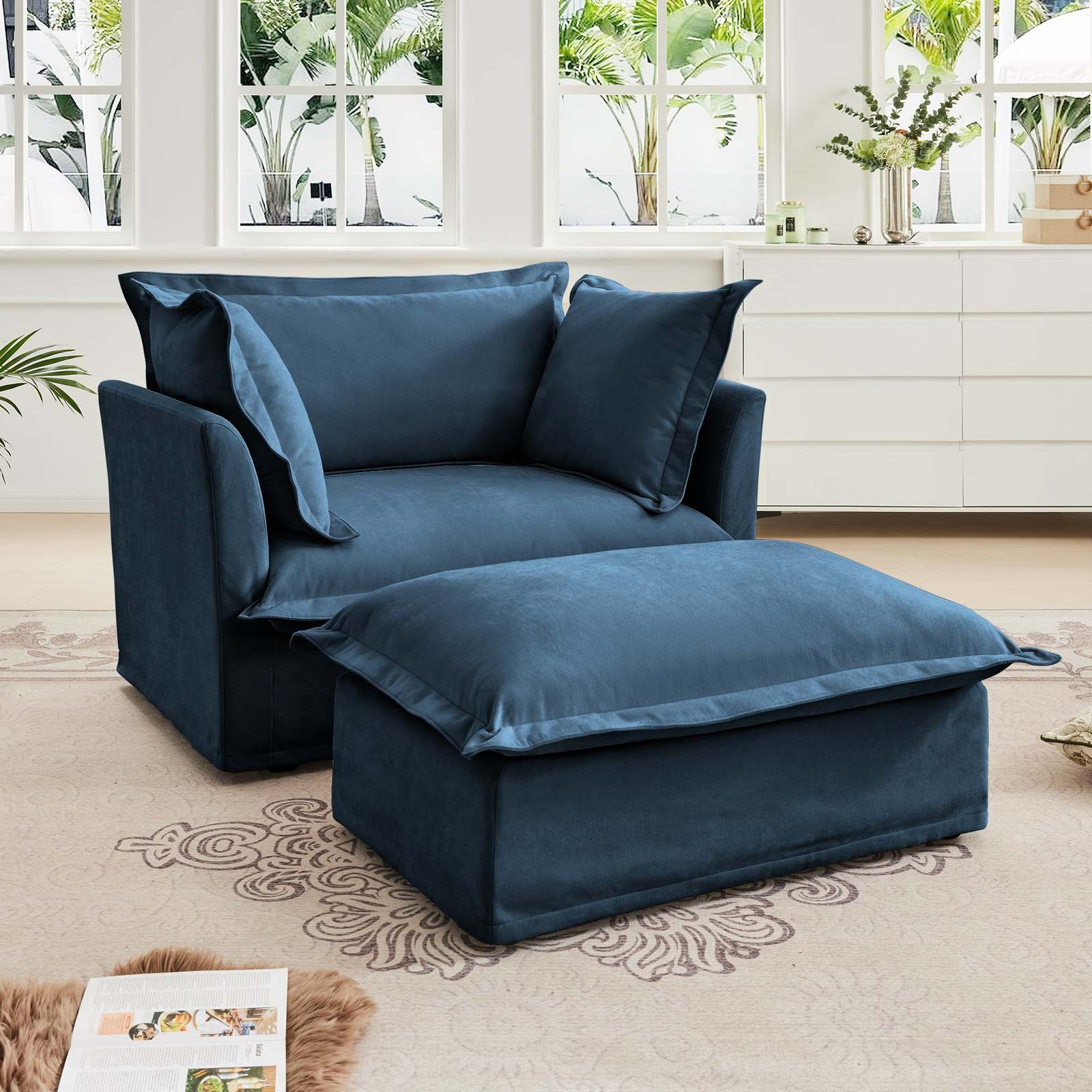 Deep Seat Armchair & Ottoman Set (Blue Chenille)