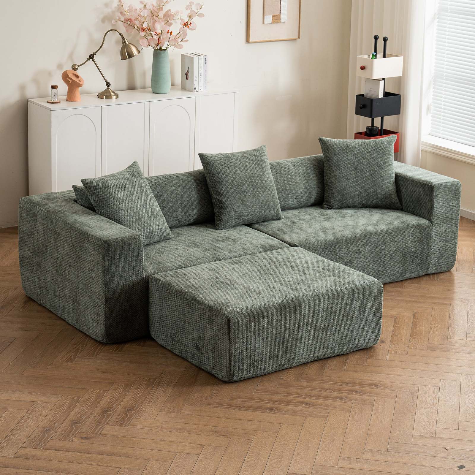 Green Chenille Modular Sofa: L-Shaped & Cloud Sofa
