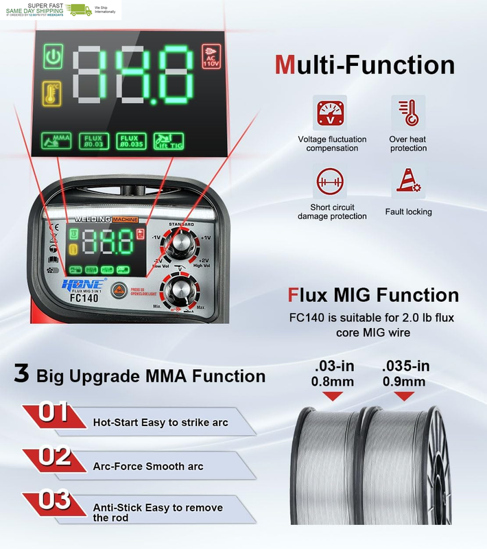 HONE MIG Welder 110V, Actual 140Amp Flux Core Welder/Stick Welder/Lift TIG 3 in