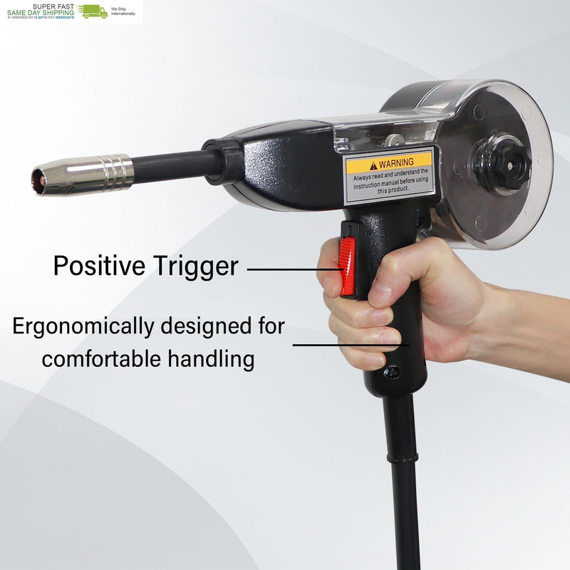 ?Comfort and Design: It?s light and easy to hold, so your hands won?t get tired, even if you?re welding in tricky spots. It has a long 15-foot cable, giving you room to move around, and the wire spool is covered up to keep it clean. The parts it uses (like tips and rollers) are standard, so they?re easy to find if you need replacements.
