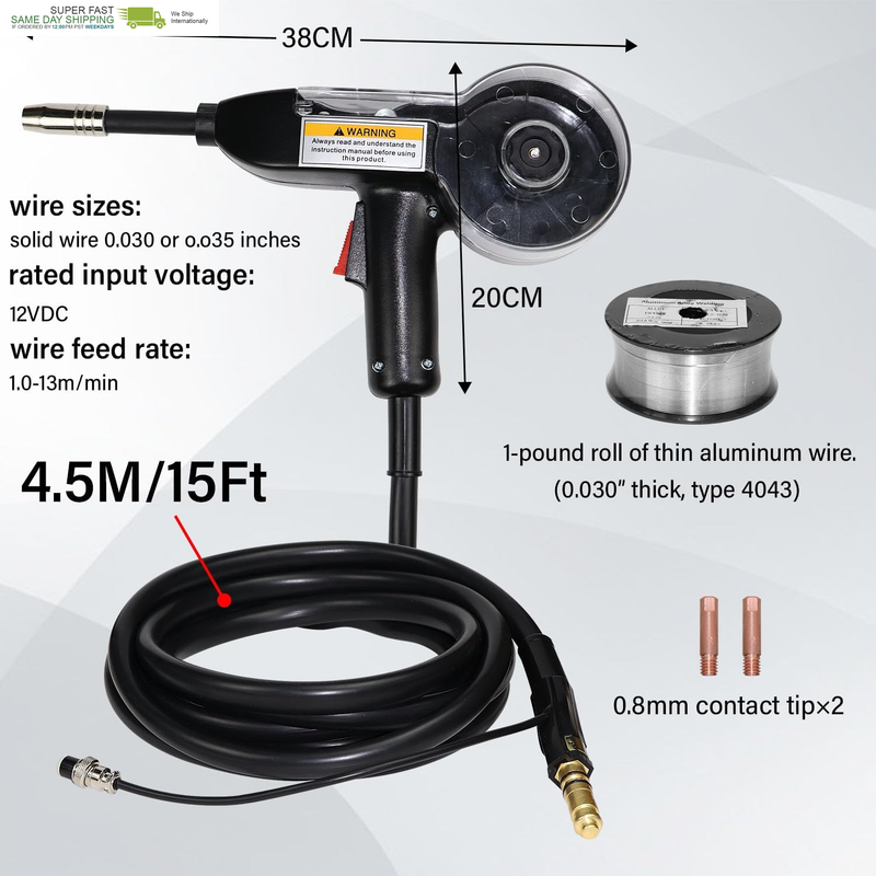 Spool Gun 130A Aluminum Welding Solution for Weldpro MIG Welding Machines - 15Ft - American Style Torch 30% Duty Cycle Welding Accessory