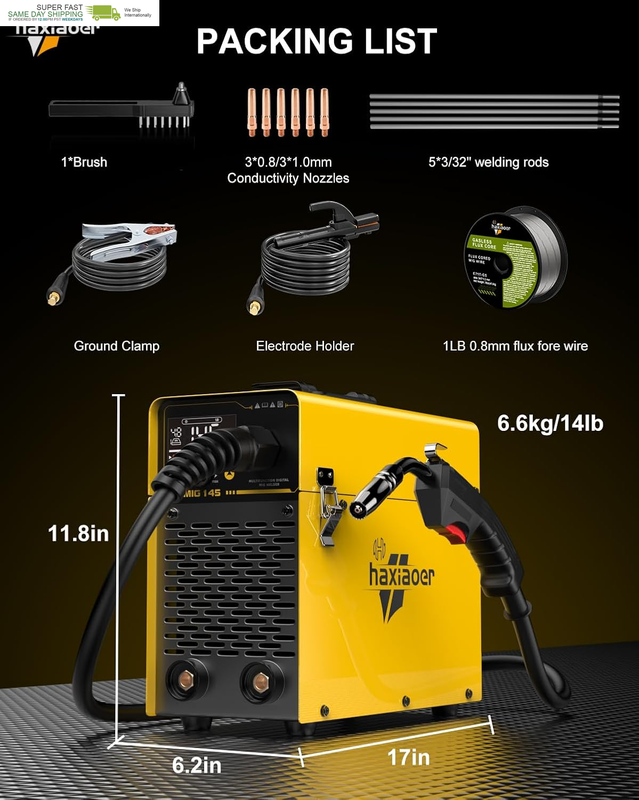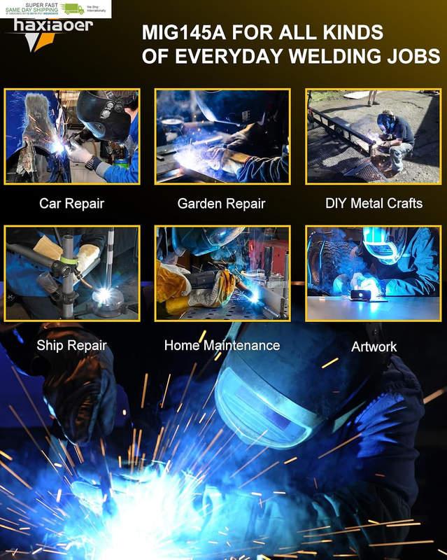 ?USER EXPERIENCE?: haxiaoer MIG145 welder offers professional-grade performance for light metal welding tasks without compromising on power or portability. Its intuitive design makes it an ideal choice for both beginners and professionals, delivering exceptional value in a user-friendly package. Highly portable, it is suitable for carrying around for repairs and can be easily stored in a truck. It provides a practical and powerful solution for mobile welding needs.