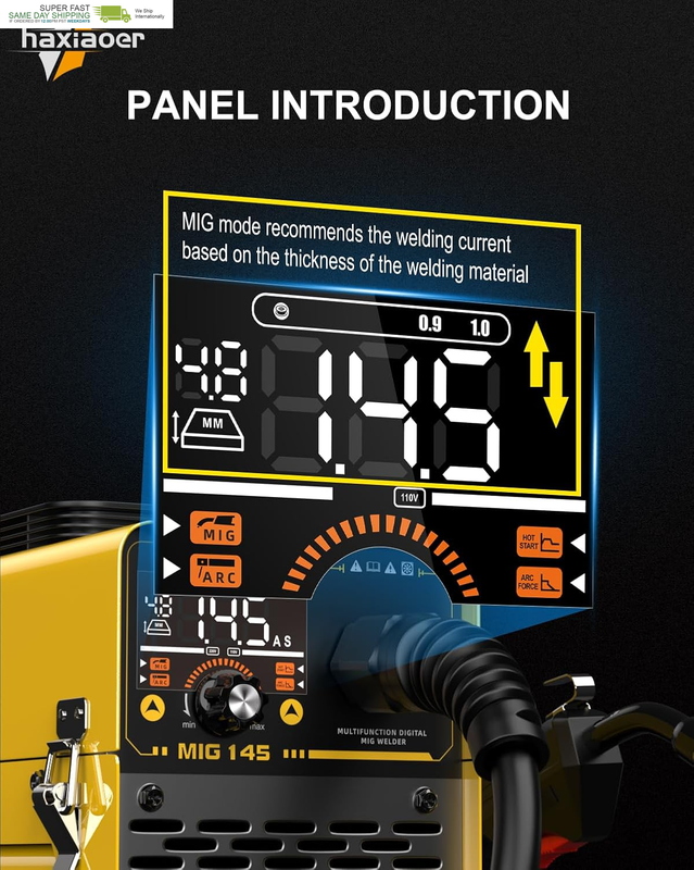 ?USER FRIENDLY INTERFACE?: haxiaoer welding machine features an intuitive and cool operating panel with clear control over welding mode, current and voltage adjustment. The large digital panel is easy to read and operate, allowing you to monitor your work without removing the welding cap, and is designed to be straightforward and convenient, ensuring efficiency and convenience during use.