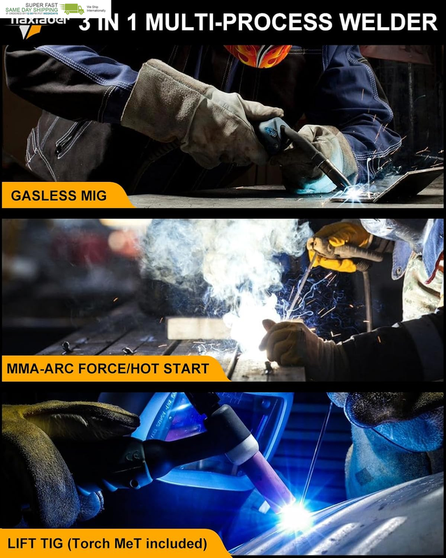 ?MULTI-PROCESS WELDING CAPABILITY?: haxiaoer MIG145A welder offers a versatile 3-in-1 functionality, supporting Gasless MIG, Lift TIG (extra torch required), and Stick welding to cater to various welding needs. making it perfect for DIY projects, home repairs, farm work, automotive applications, and construction sites. Easily switch between flux core welding and stick welding to meet all your needs.Suitable for both beginners and professionals.