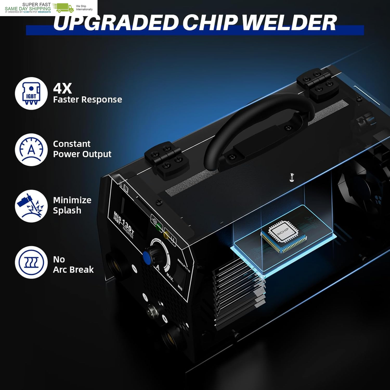 The 1st DEDICATED CHIP FOR WELDING MACHINES: Powered by RICHIP, MIG130T can automatically recognize the welding function and automatically adjust the control parameters according to the actual welding situation to ensure the welding quality