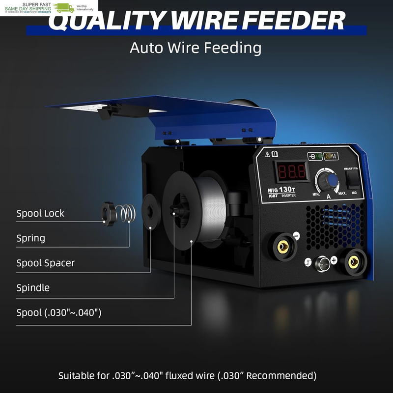 WIDE COMPATIBILITY: MIG130T can apply to .030''/.035"/.040''(0.8~1.0mm) flux core wire. And in ARC mode, it can apply to 1/16~2/32" electrode, that supports welding with E6013 rods
