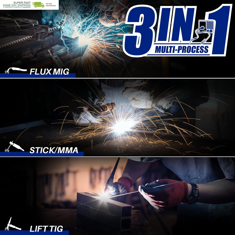 3-IN-1 MULTI-PROCESS WELDER: Upgraded FLUX CORE ARC LIFT TIG welder machine, which can deliver up to 130 Amp output. Only one MIG130T can meet your home automotive repair, renovation, welding DIY, and sheet metal processing, and other welding needs