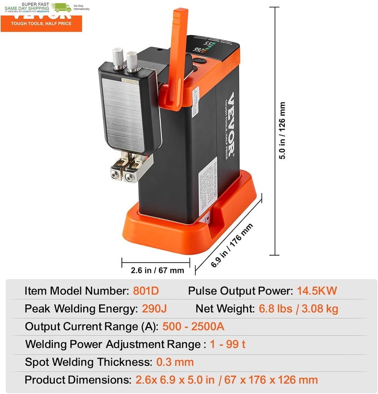 Power up your battery spot welding experience with VEVOR 801D battery spot welder! With 14.5kw max welding power and super energy-gathered pulse welding technology, it achieves superior spot welding results for 0.1mm to 0.3mm pure nickel, ideal for battery, hardware, and electronic components.