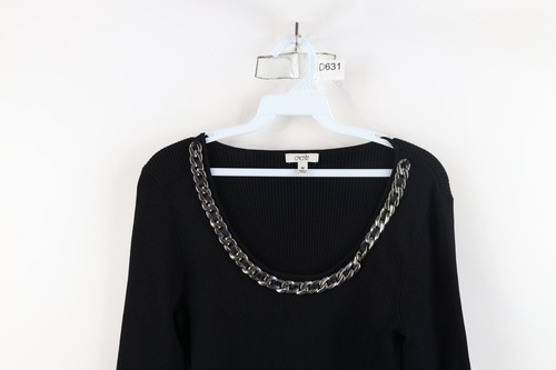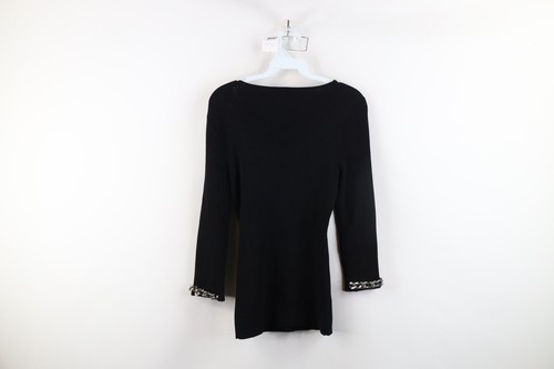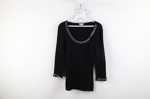 Vintage 90s Cache Womens Medium Stretch Ribbed Knit Cuban Link Knit Sweater