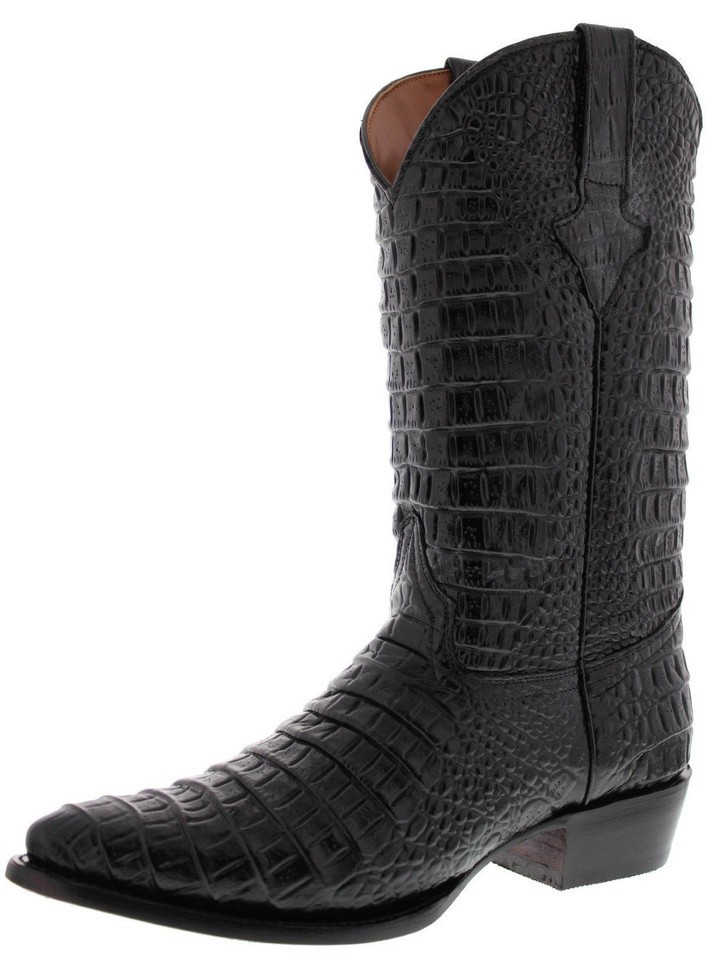 Mens Western Boots Black Full Crocodile Belly Print Leather Size 8-9.5, 12-13.5