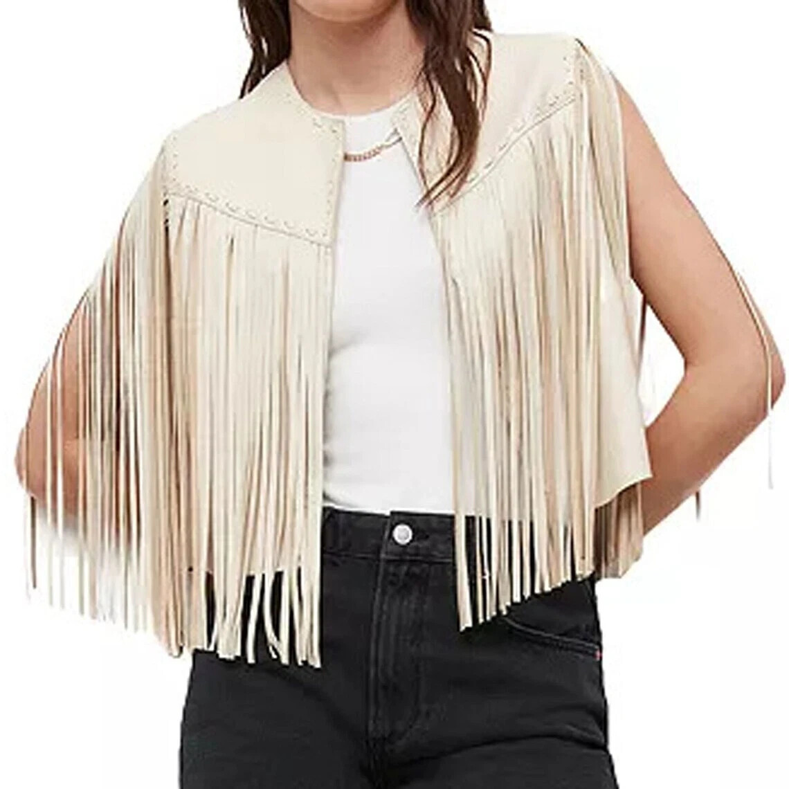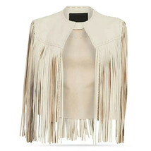 New Women Jacket Fringe Cream Handmade Leather Lambskin Stylish Casual Soft Fit