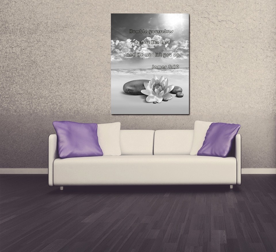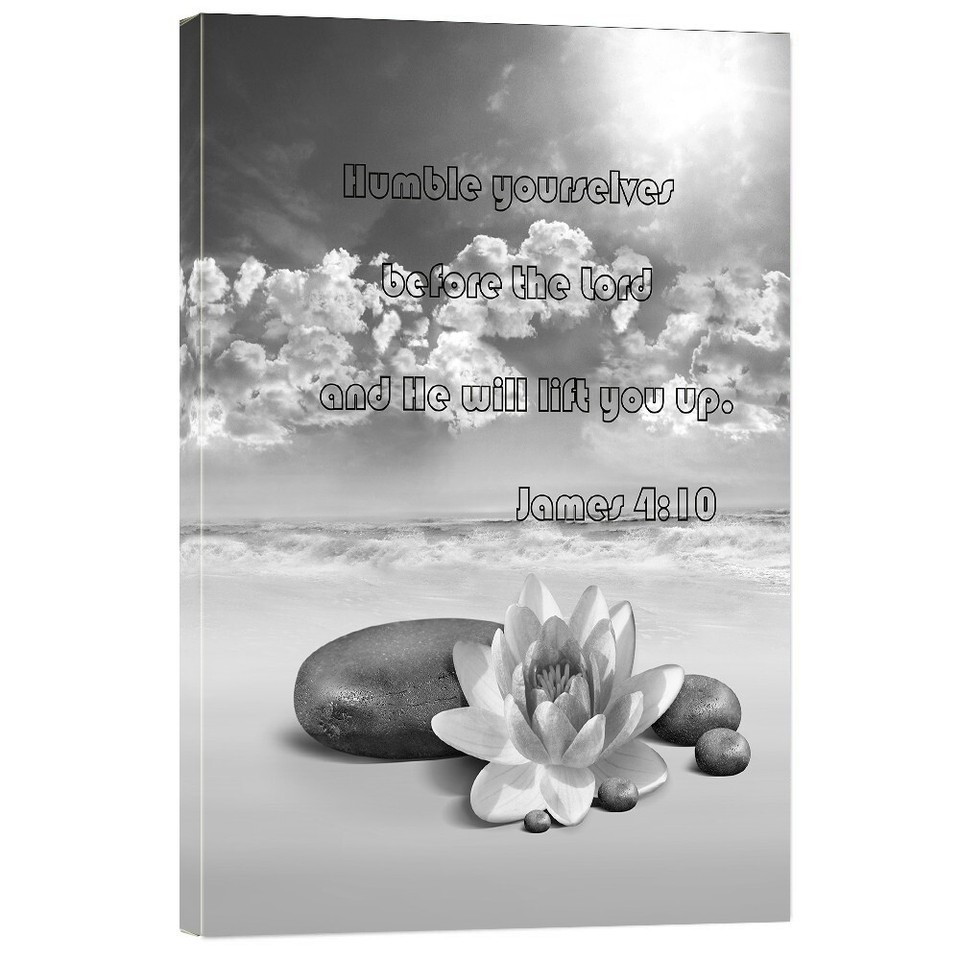 "?Humble yourselves before the Lord.? This inspiring canvas print features James 4:10, a powerful Bible verse celebrating humility and God?s grace.