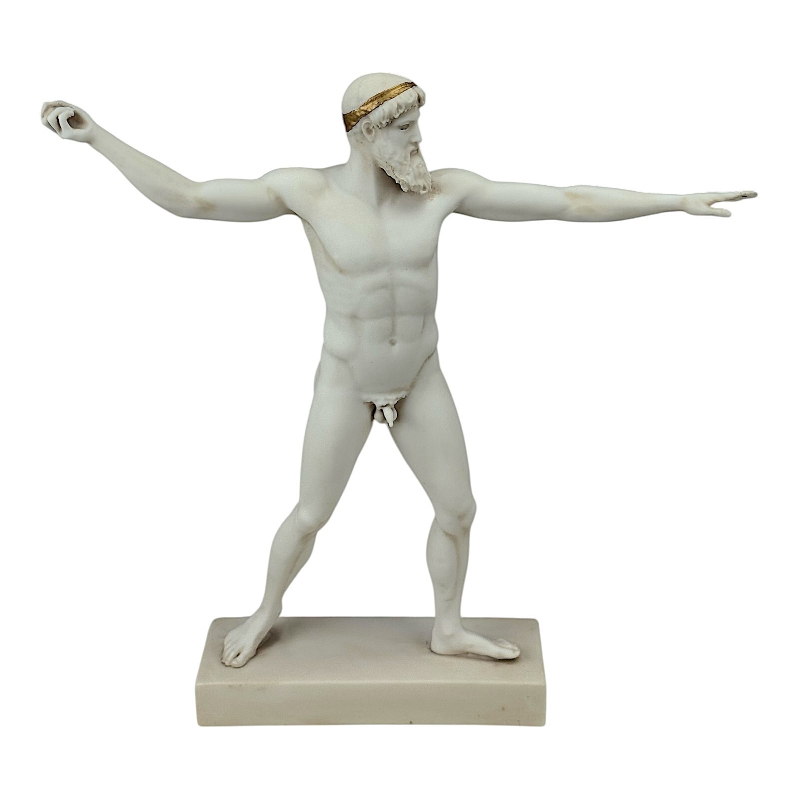 The identity of the god is debated?whether Poseidon (with trident) or Zeus (with thunderbolt). The original object he held is lost, but the power and motion in his form remain unmatched.