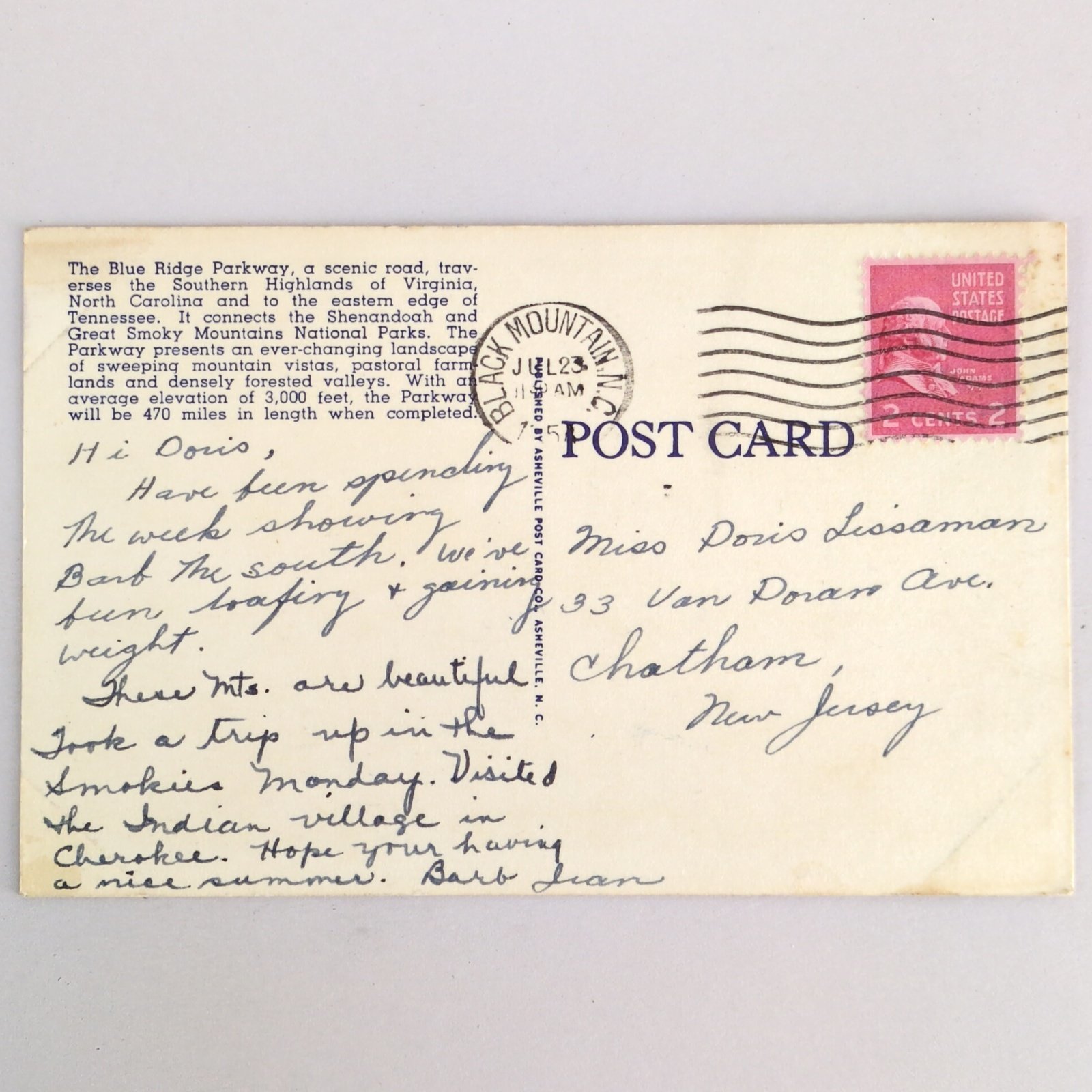 Vintage Linen Postcard 1954 Purple Rhododendron in Bloom Blue Ridge Parkway NC
