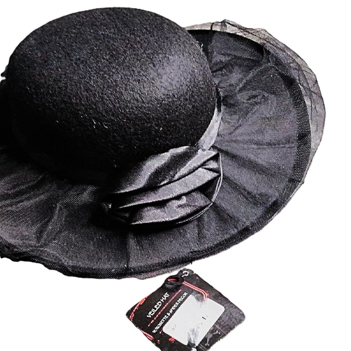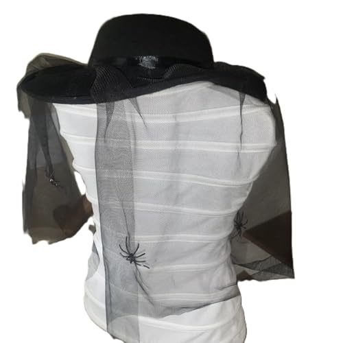 Product description: Goth BLACK MOURNER HAT VEIL Rosette Spider Steampunk Halloween Costume Accessory - BLACK WIDOW HAT w/ VEIL Rosette Spiders Gothic Funeral Mourner Vampiress Costume